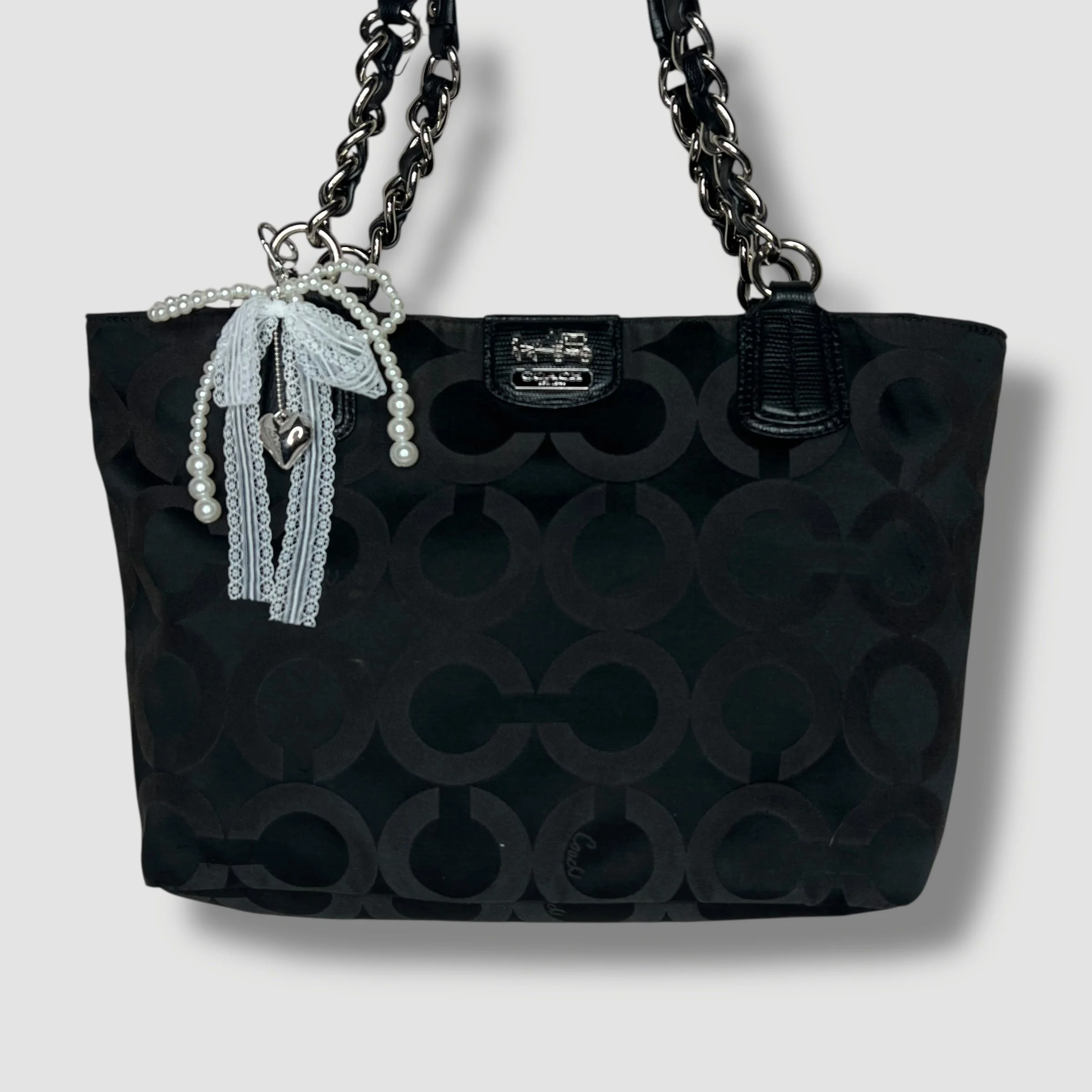 Y2K Coach Mia Op Art Chain Strap Black Tote Bag