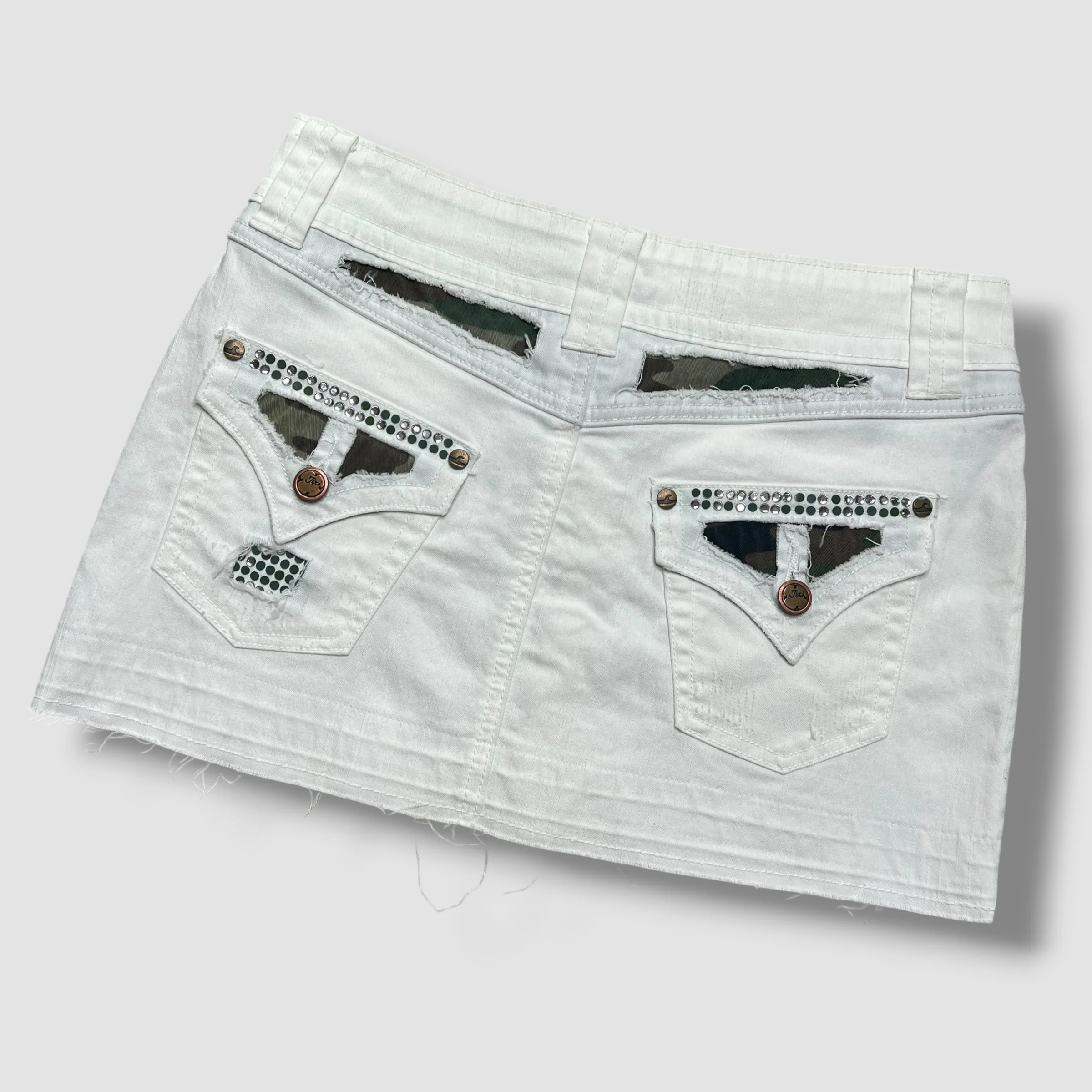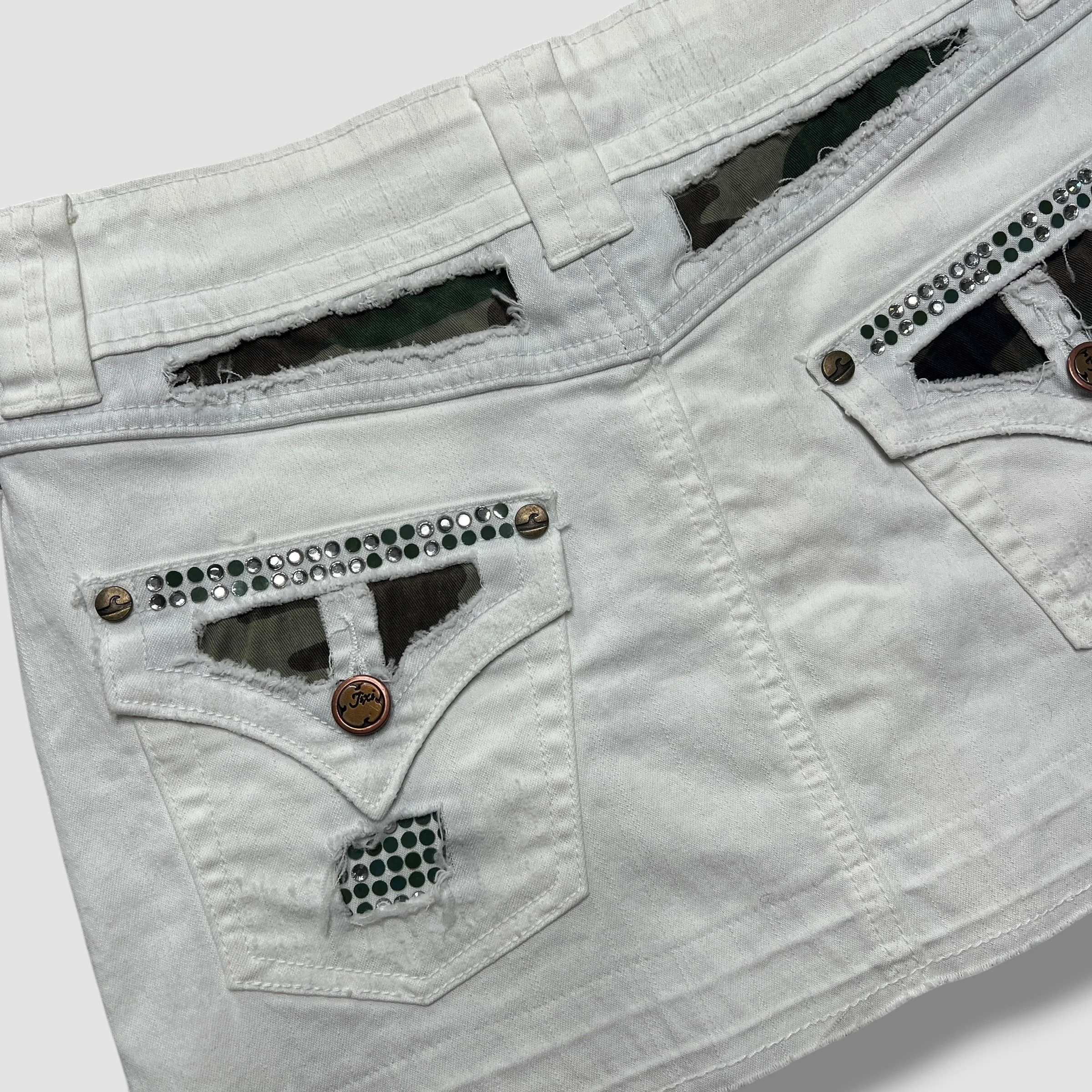 Jixi Denim White and Camo Mini Skirt