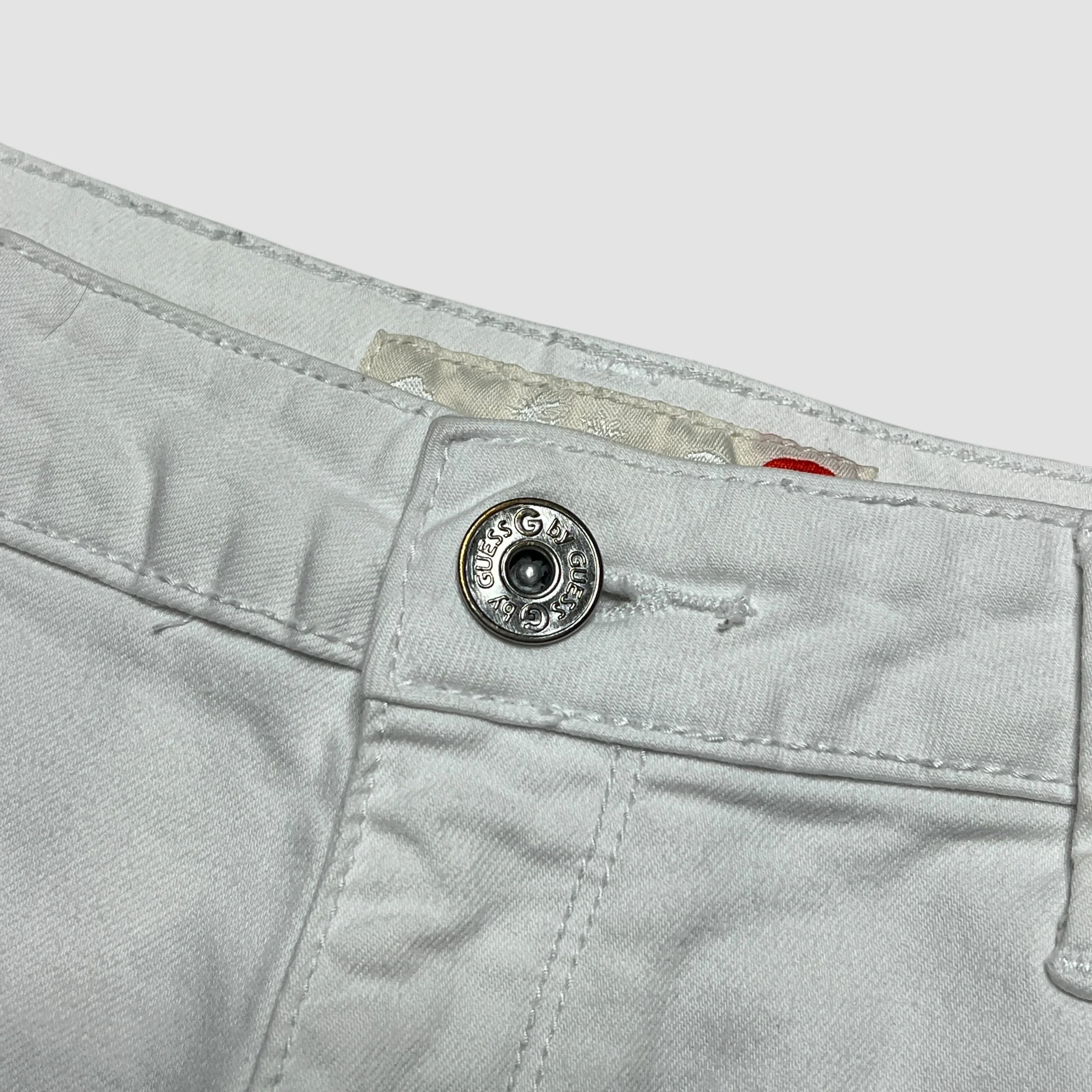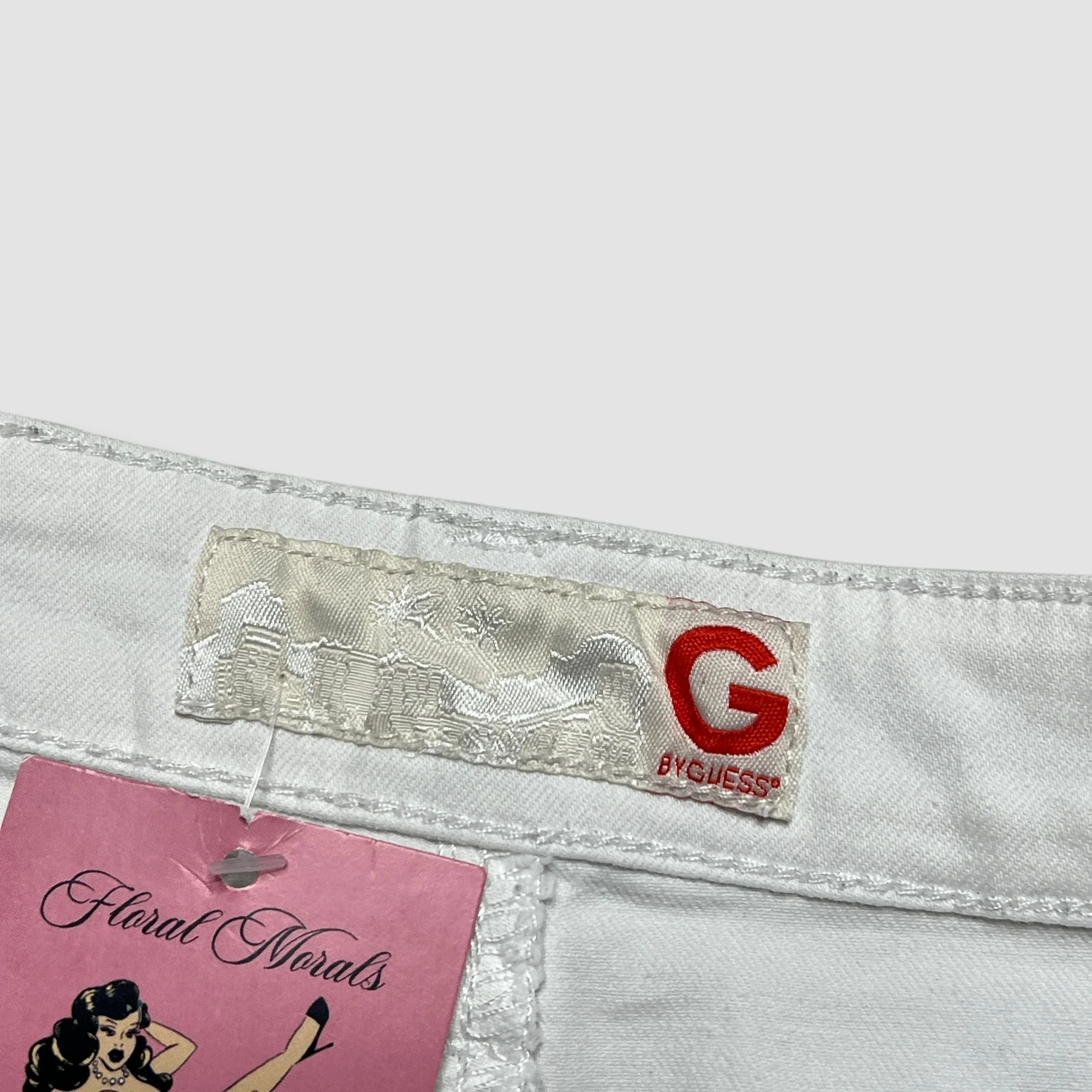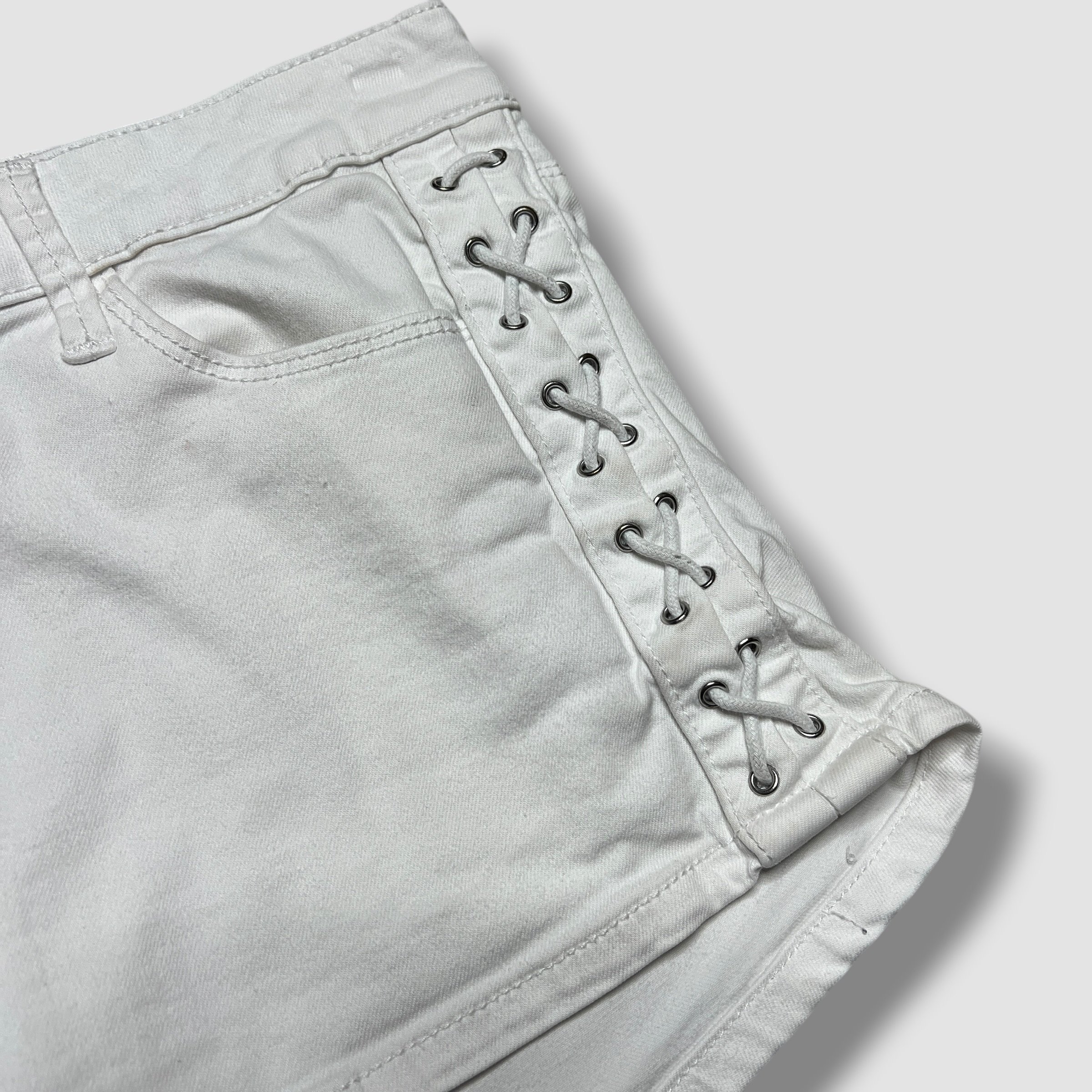 Y2K Guess White Denim Lace Up Detail Mini Shorts