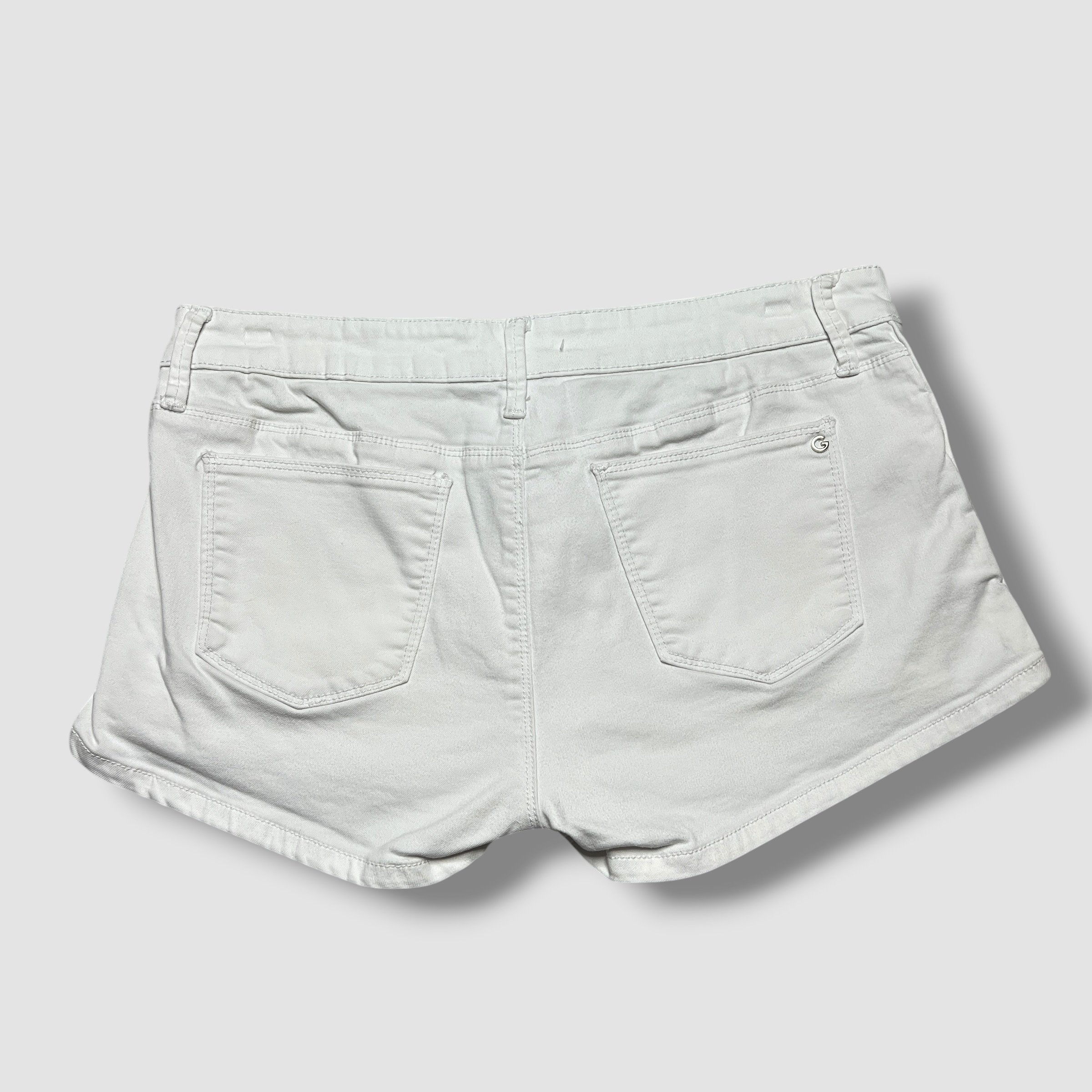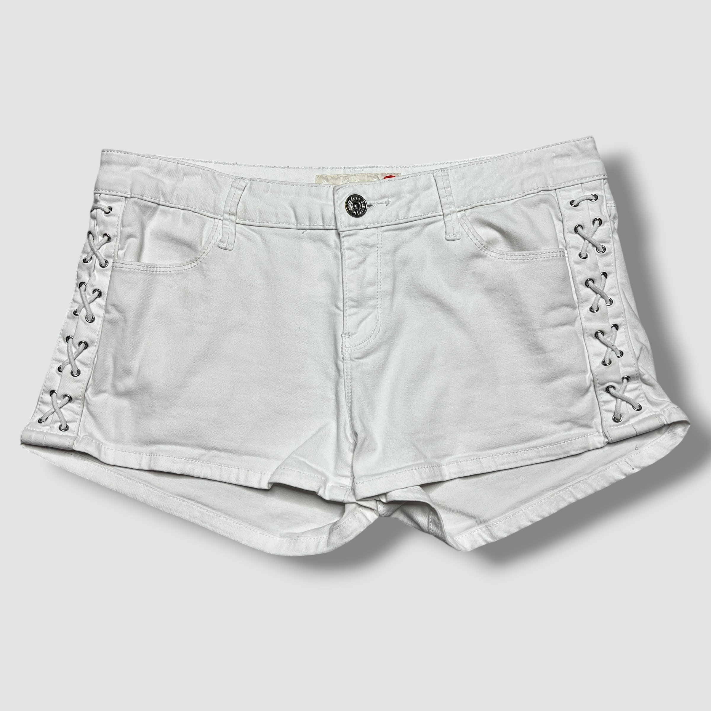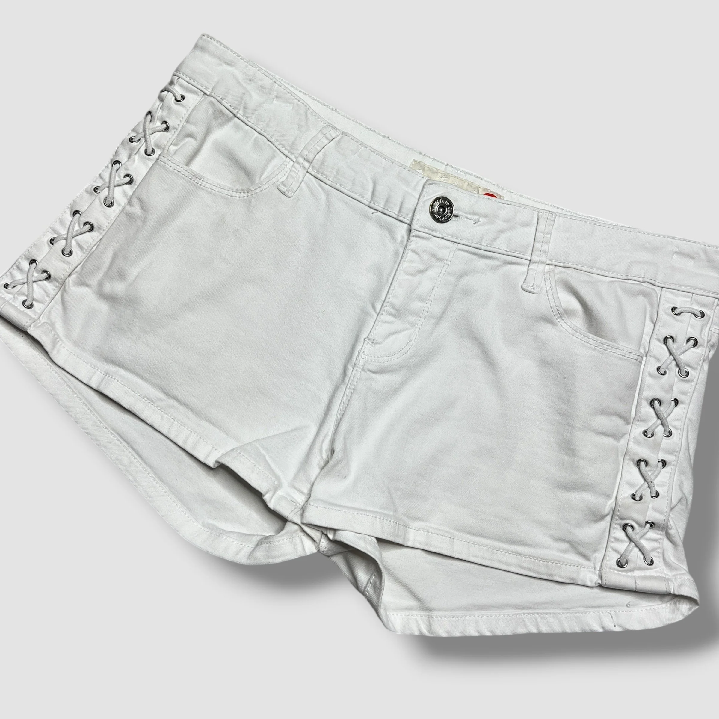 Y2K Guess White Denim Lace Up Detail Mini Shorts