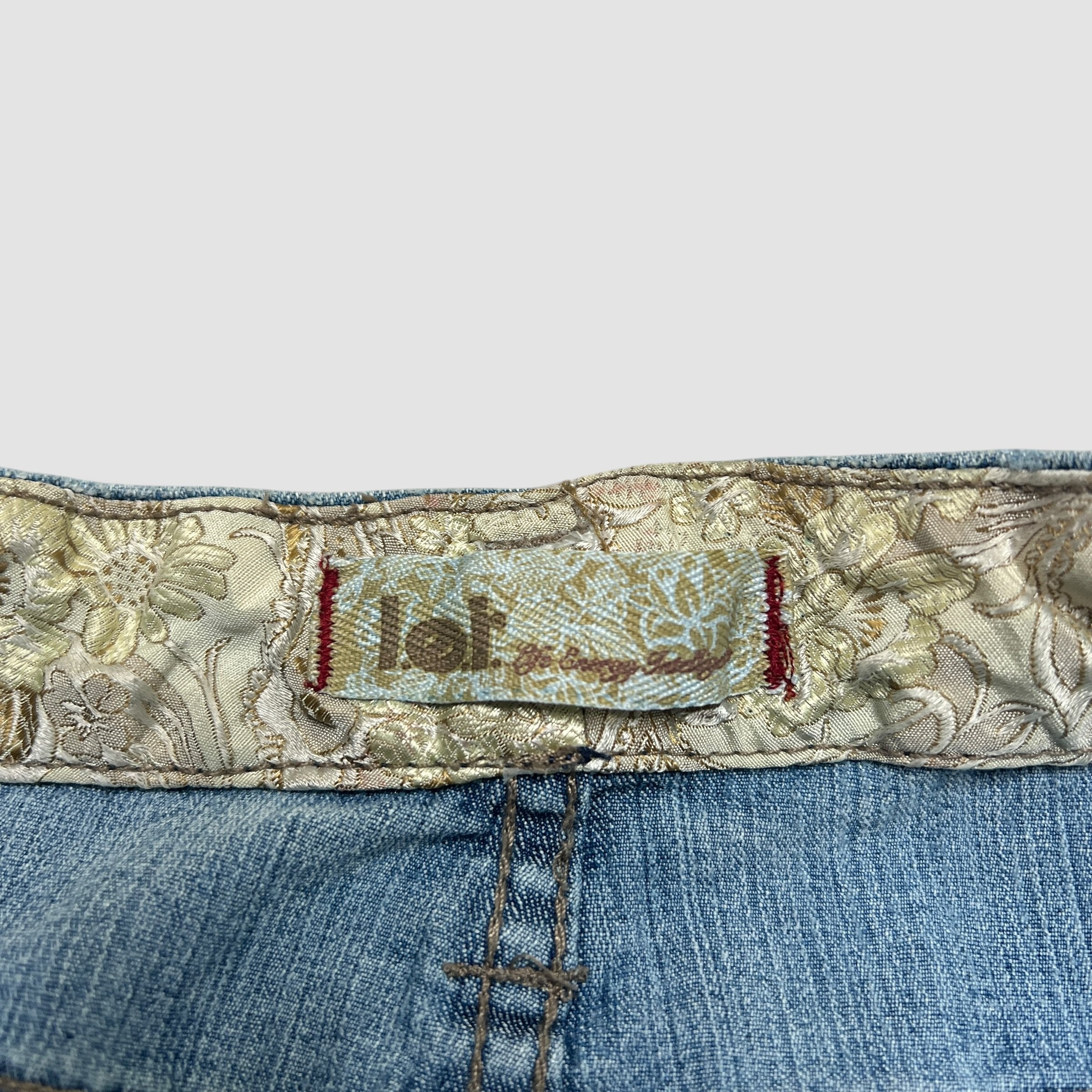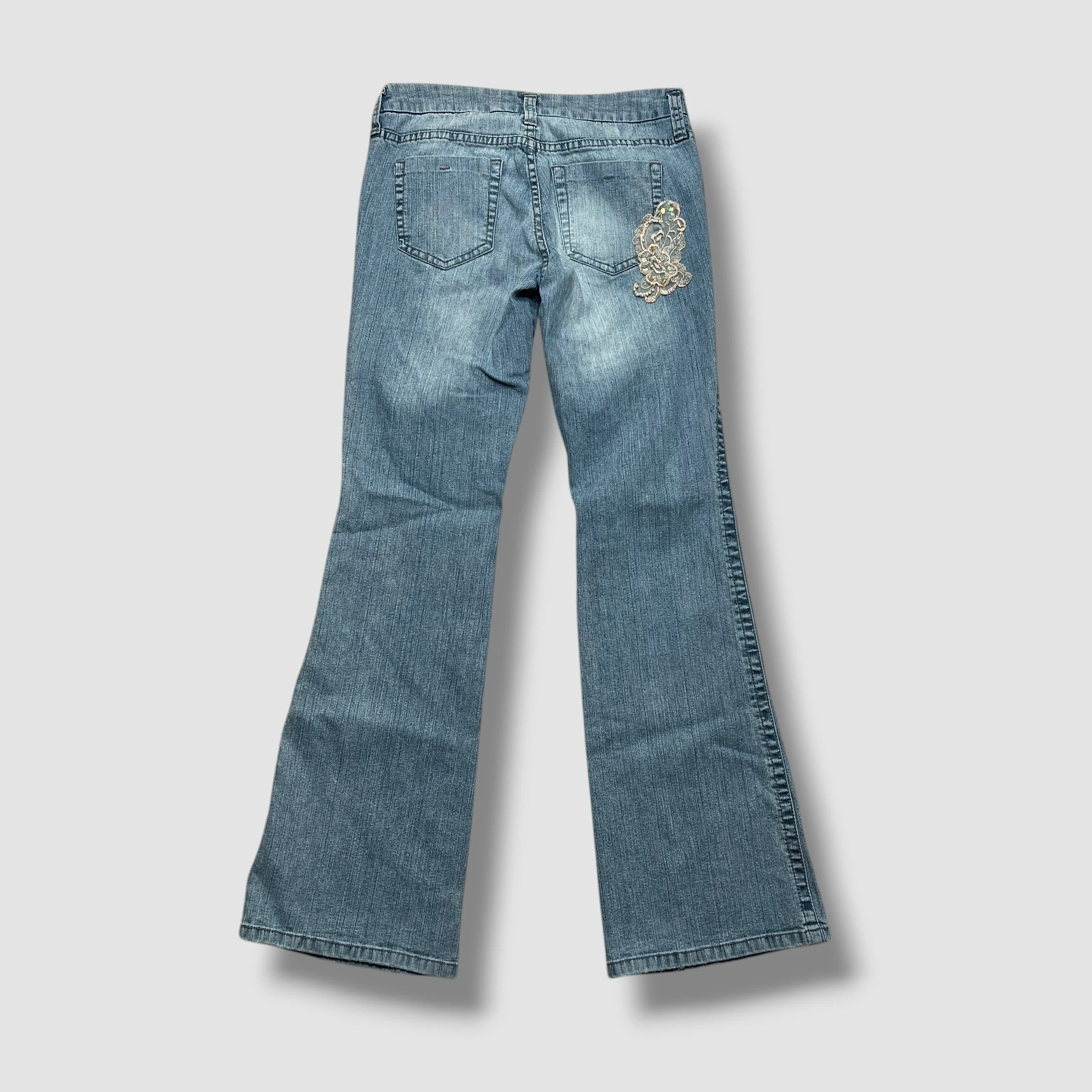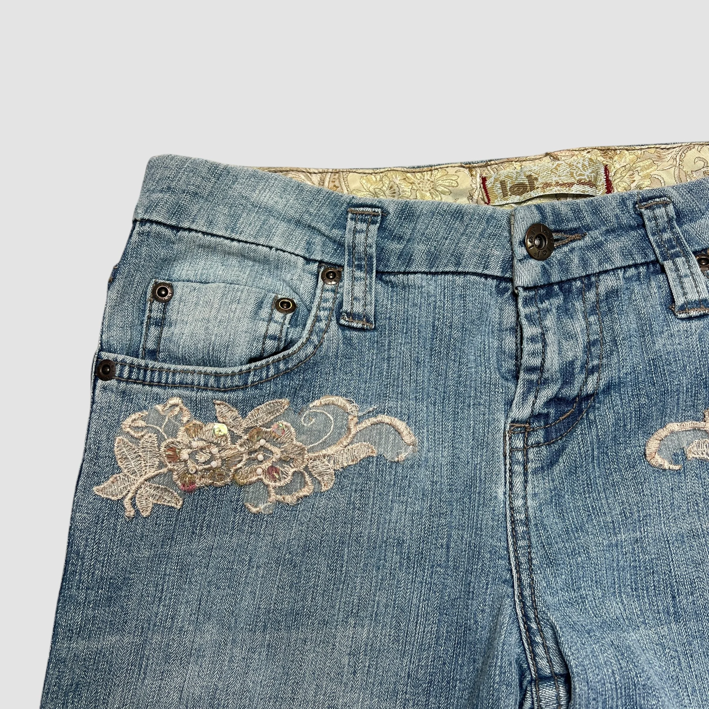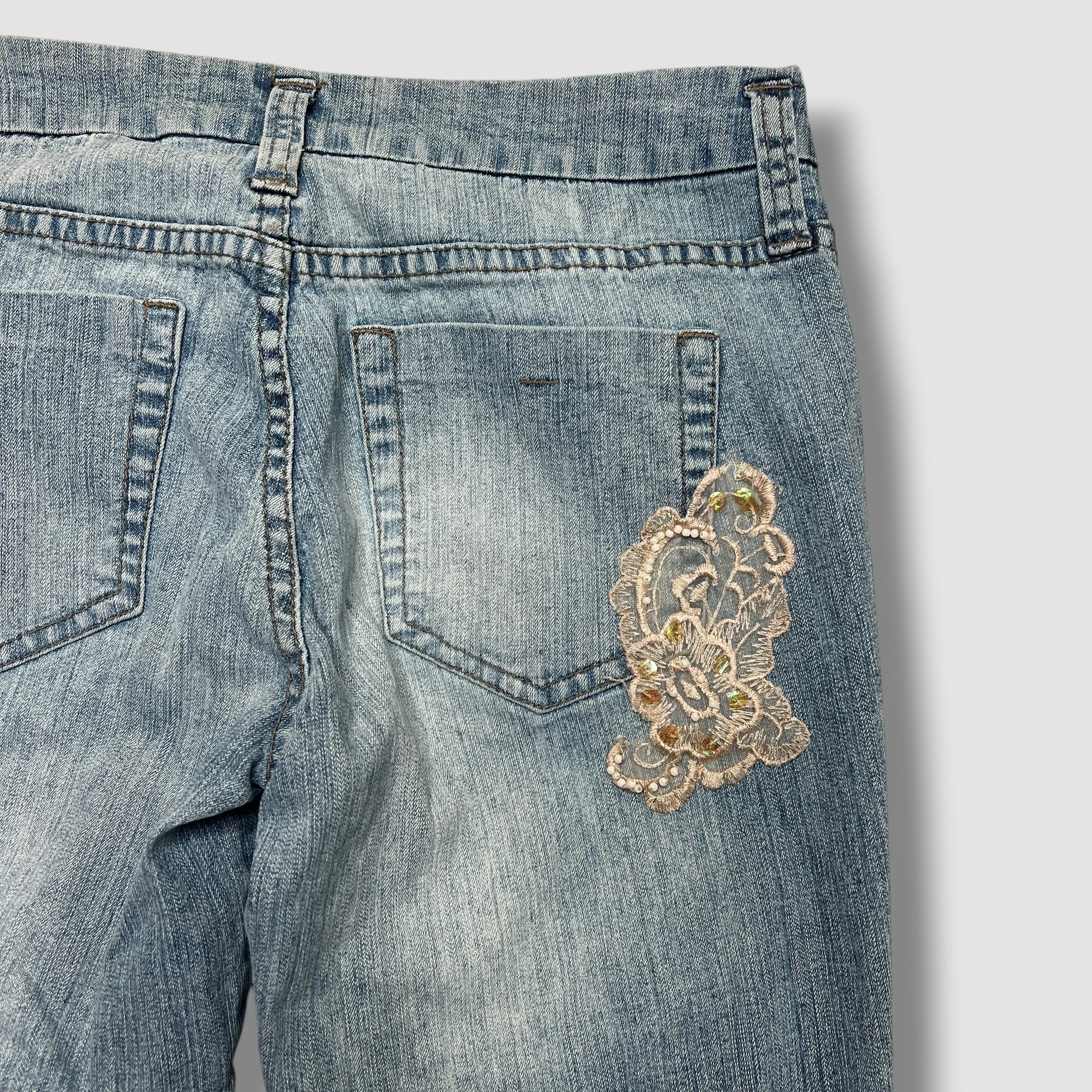 LEI Floral Embellished Sequin Denim Flare Jeans