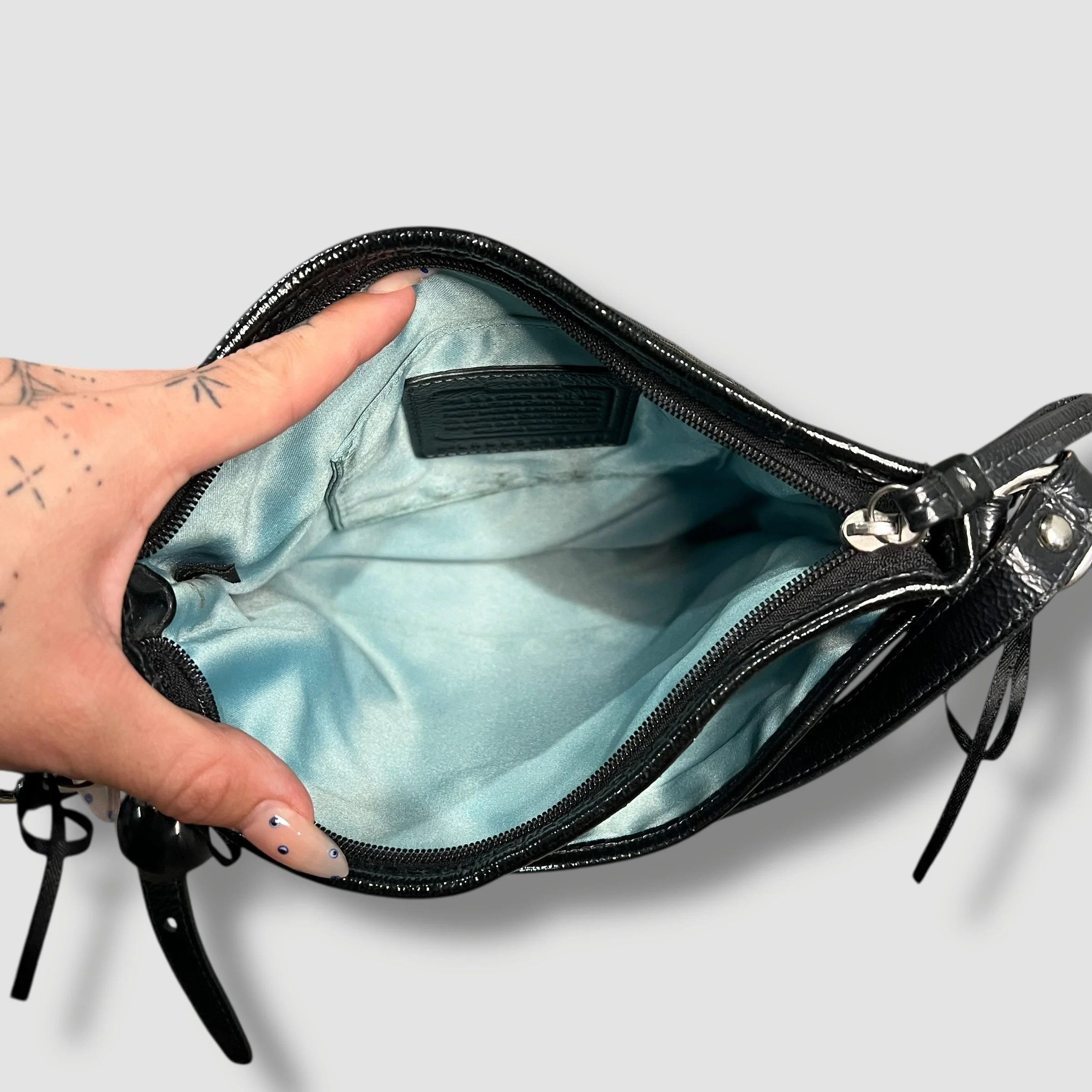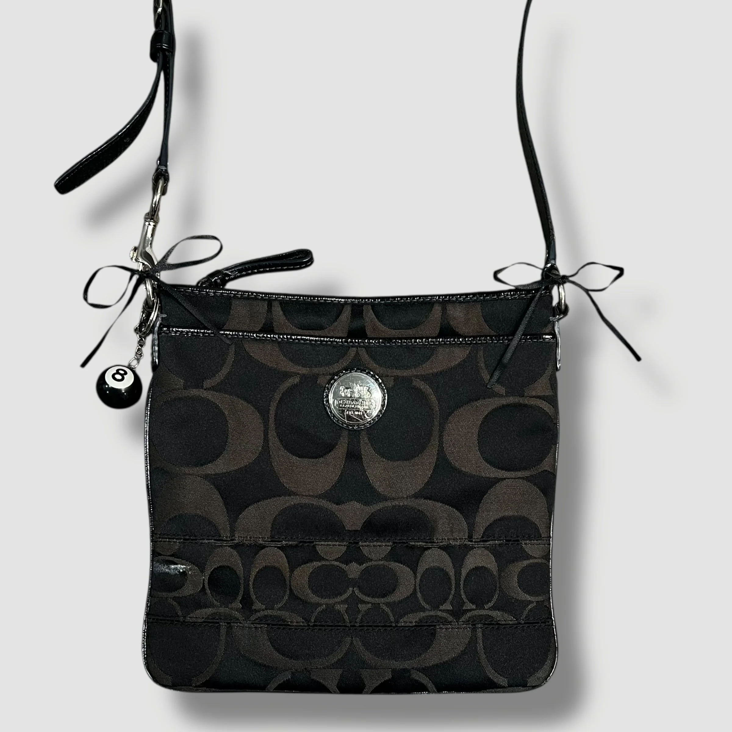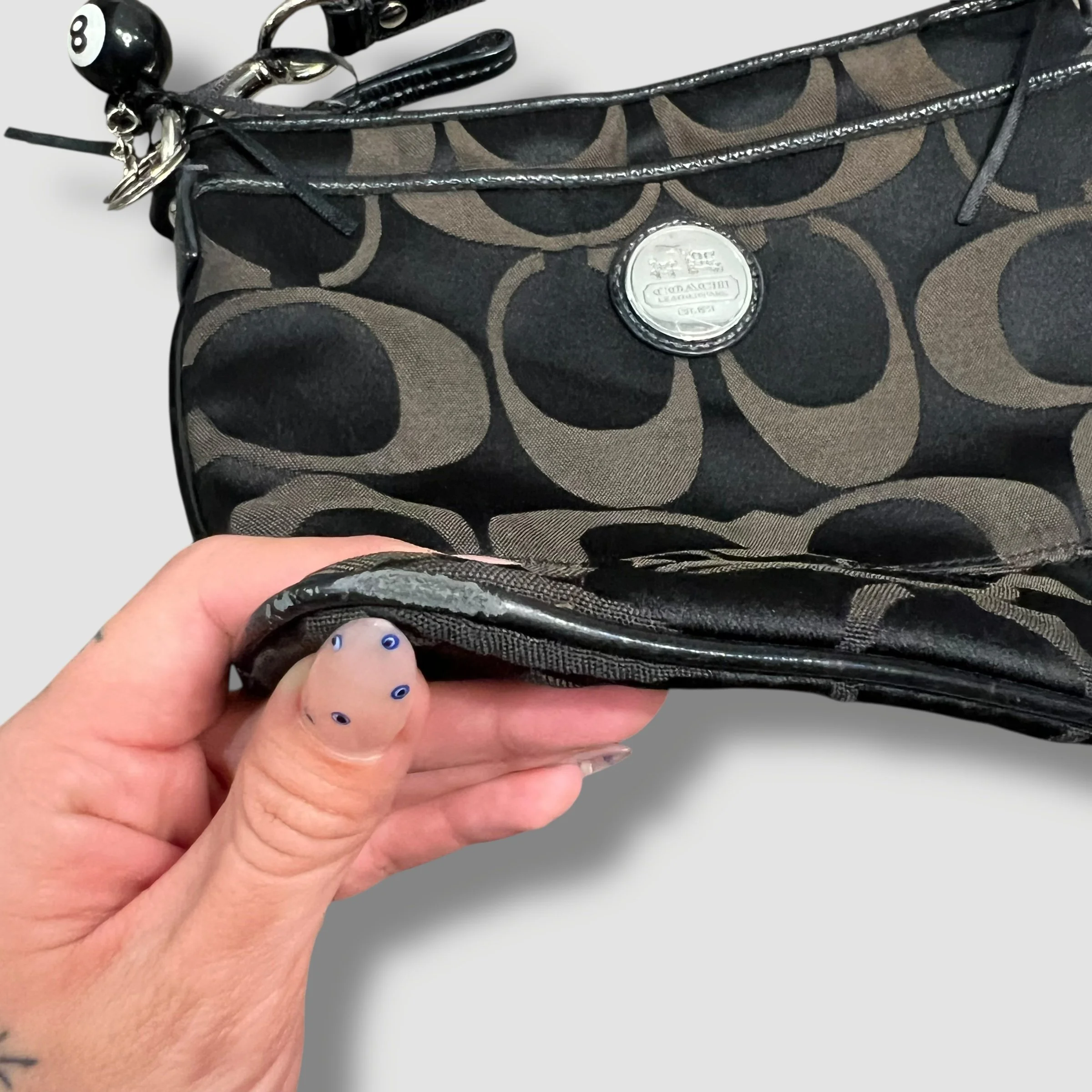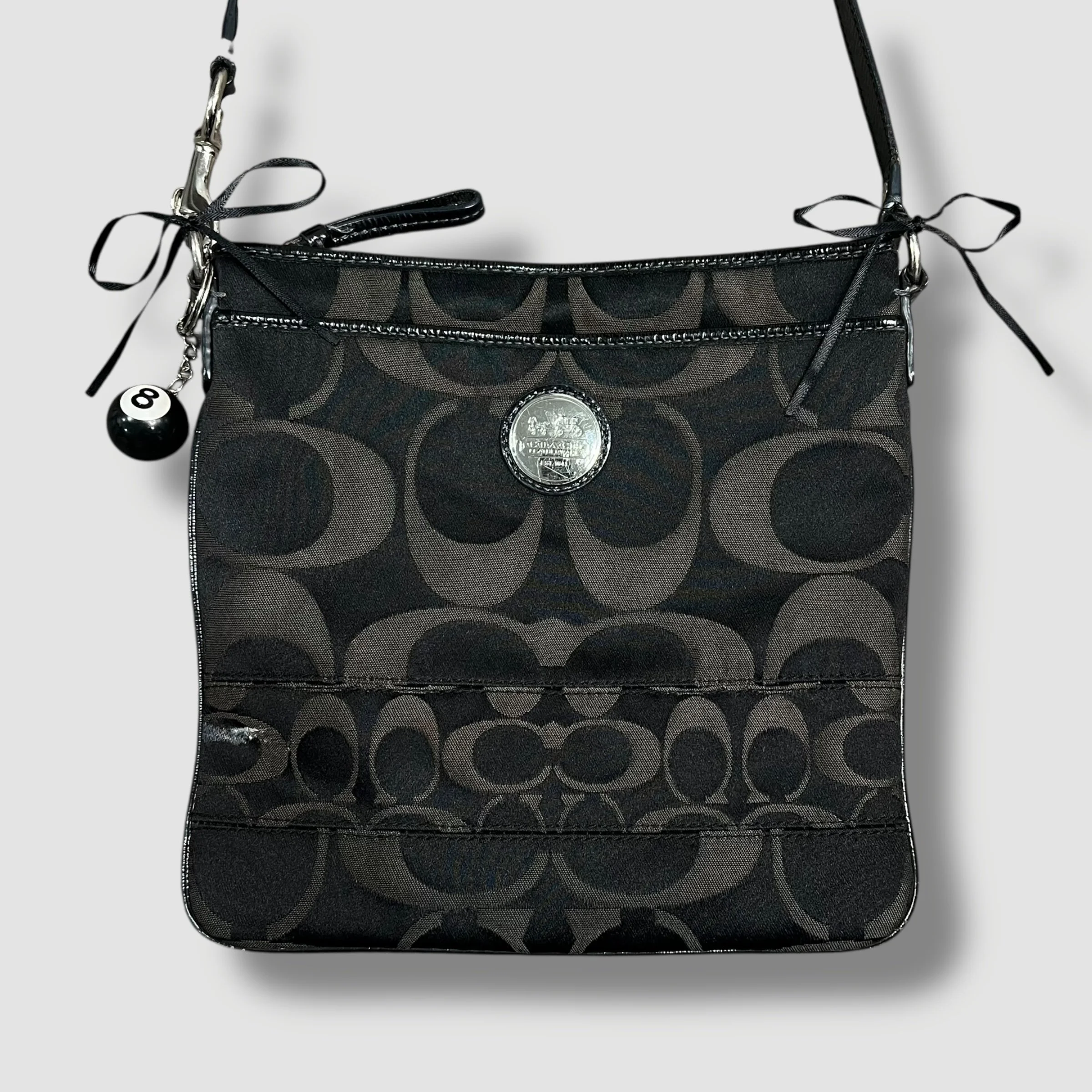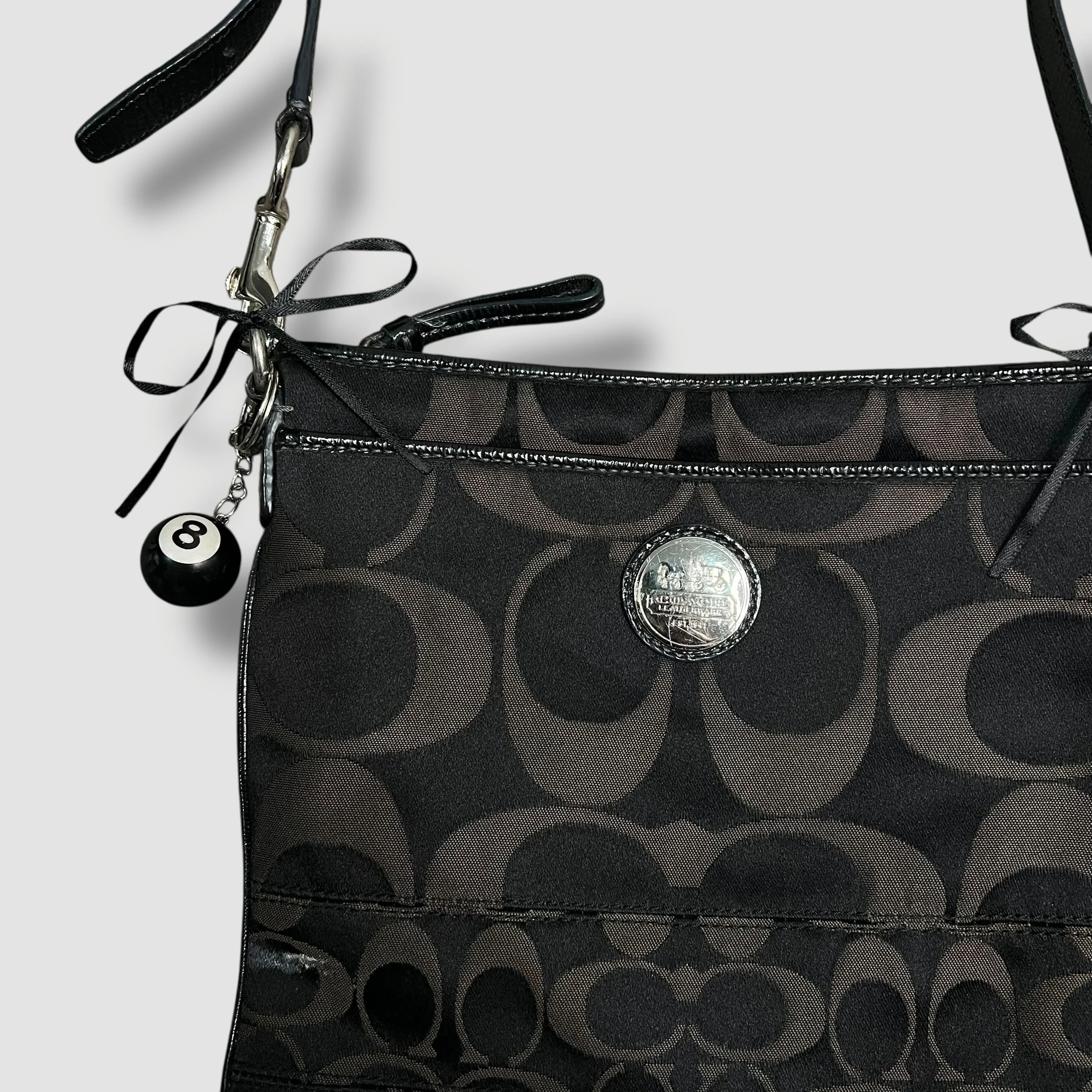 Coach Mia Ocelet Satchel Shoulder Bag with Black and Grey Leopard Print & Patent Leather Trim
