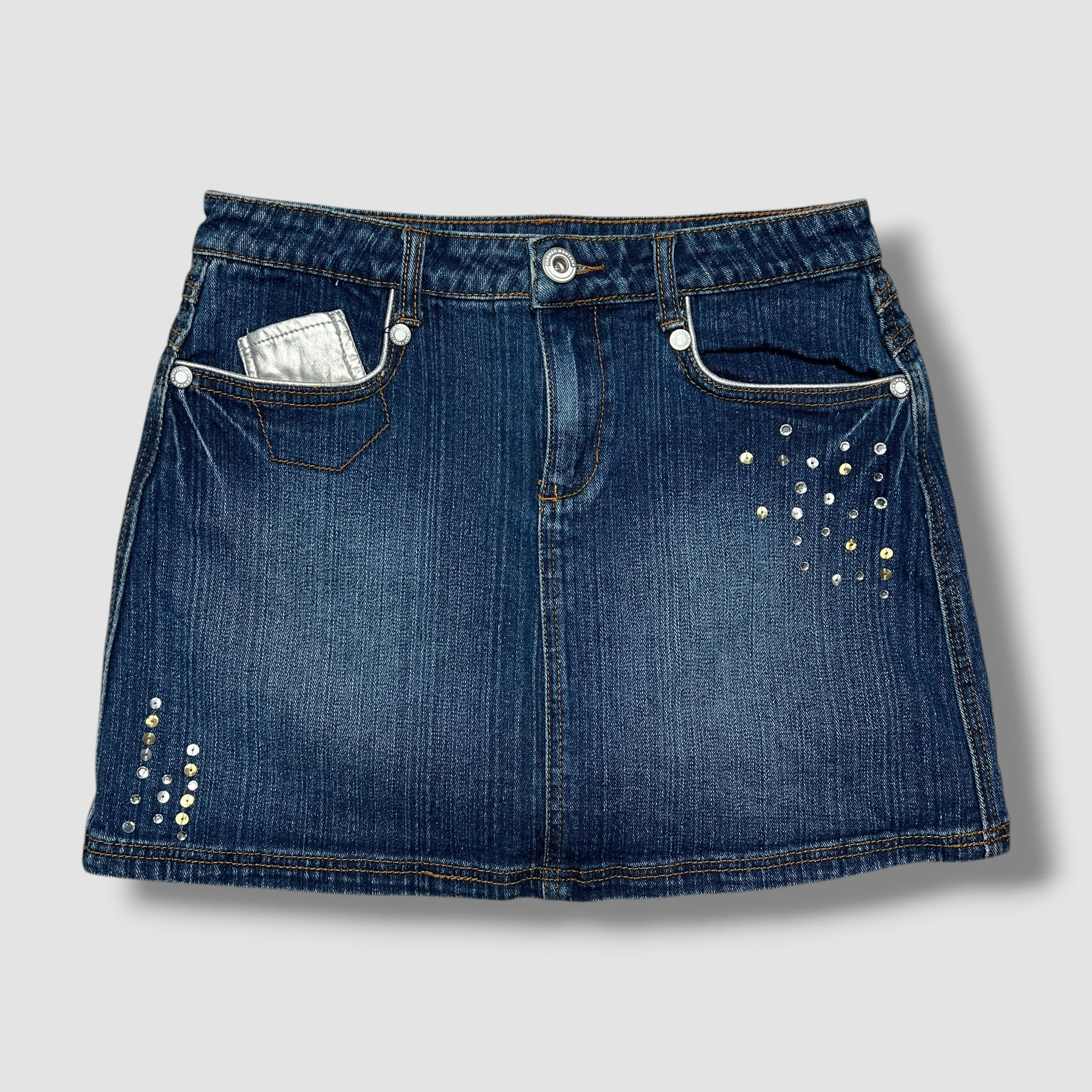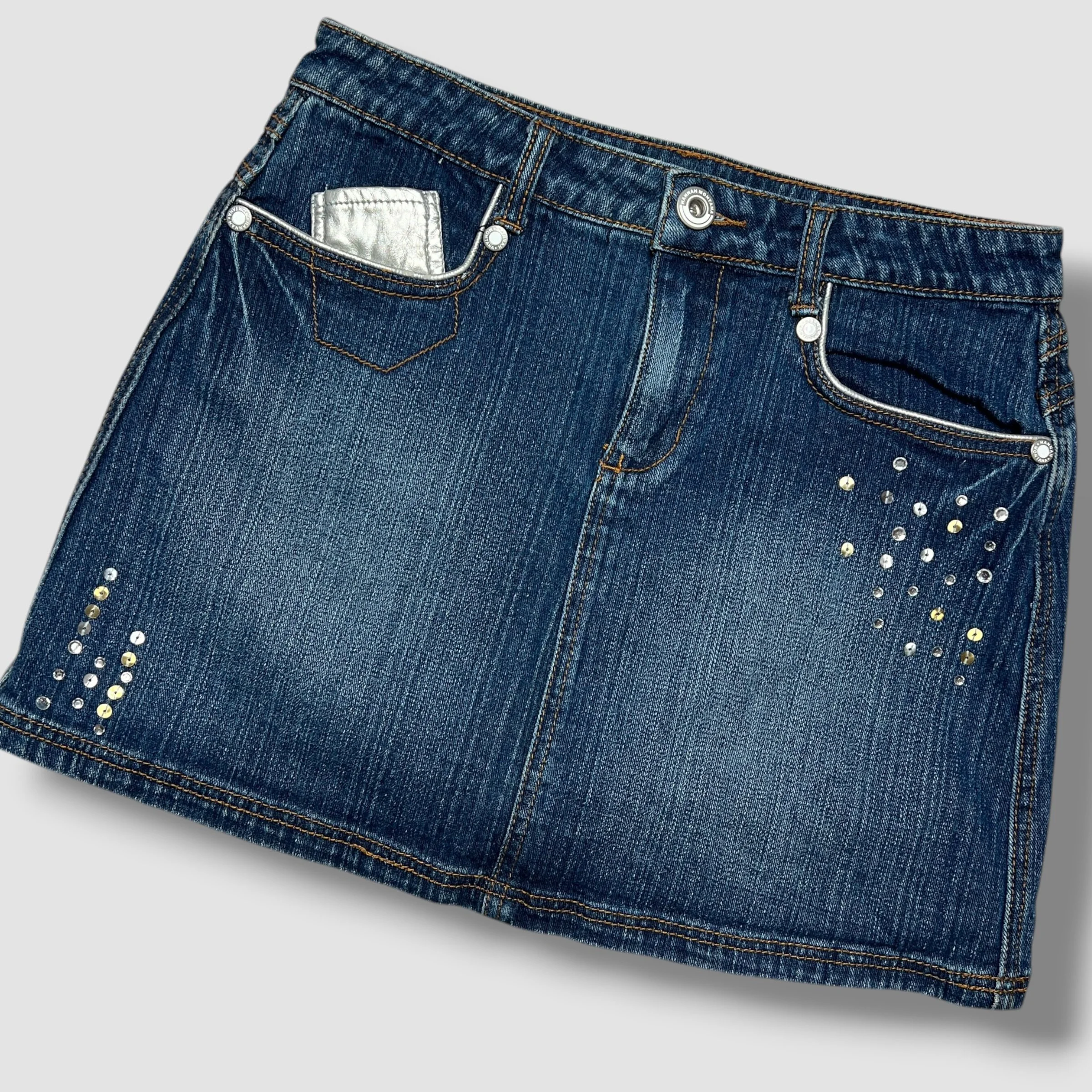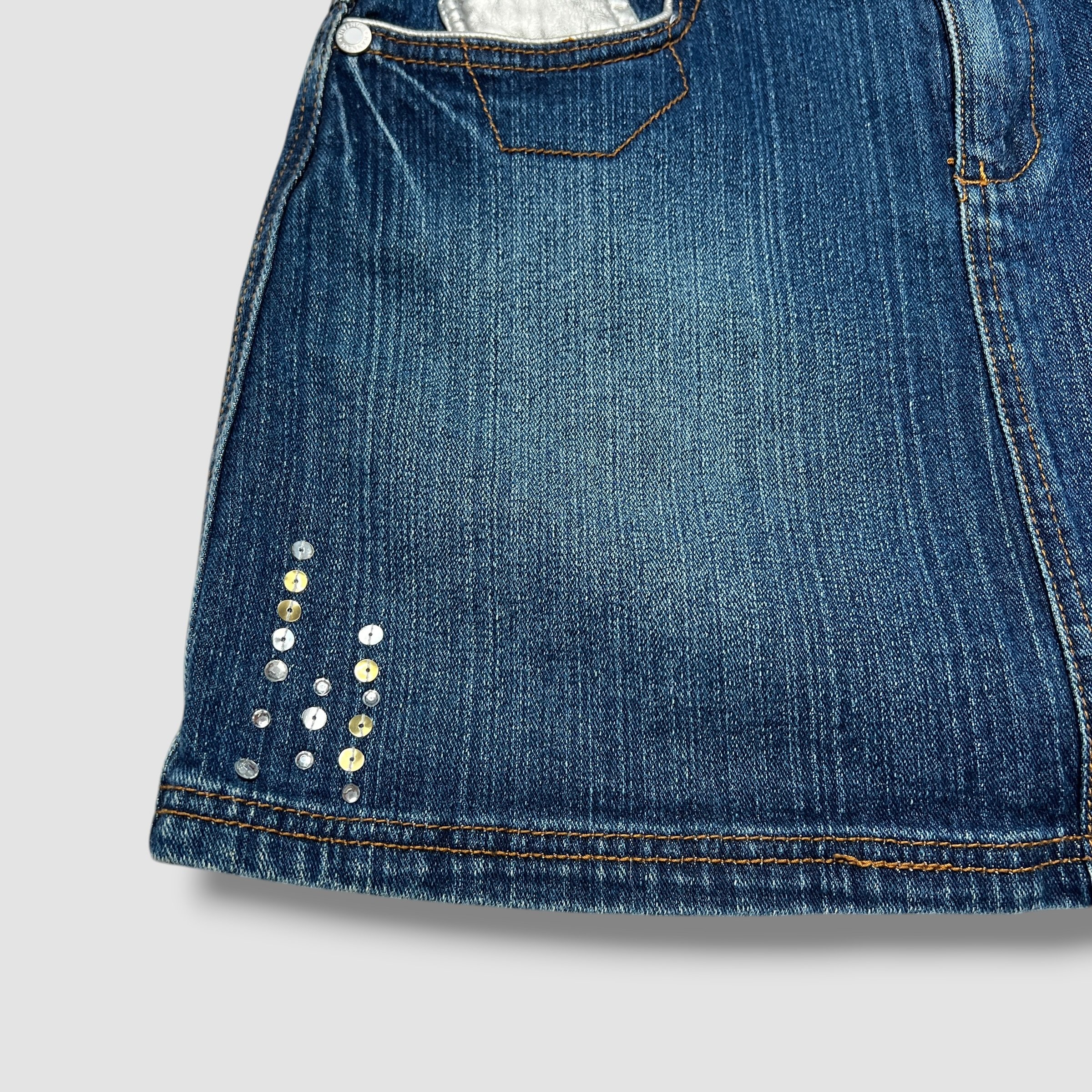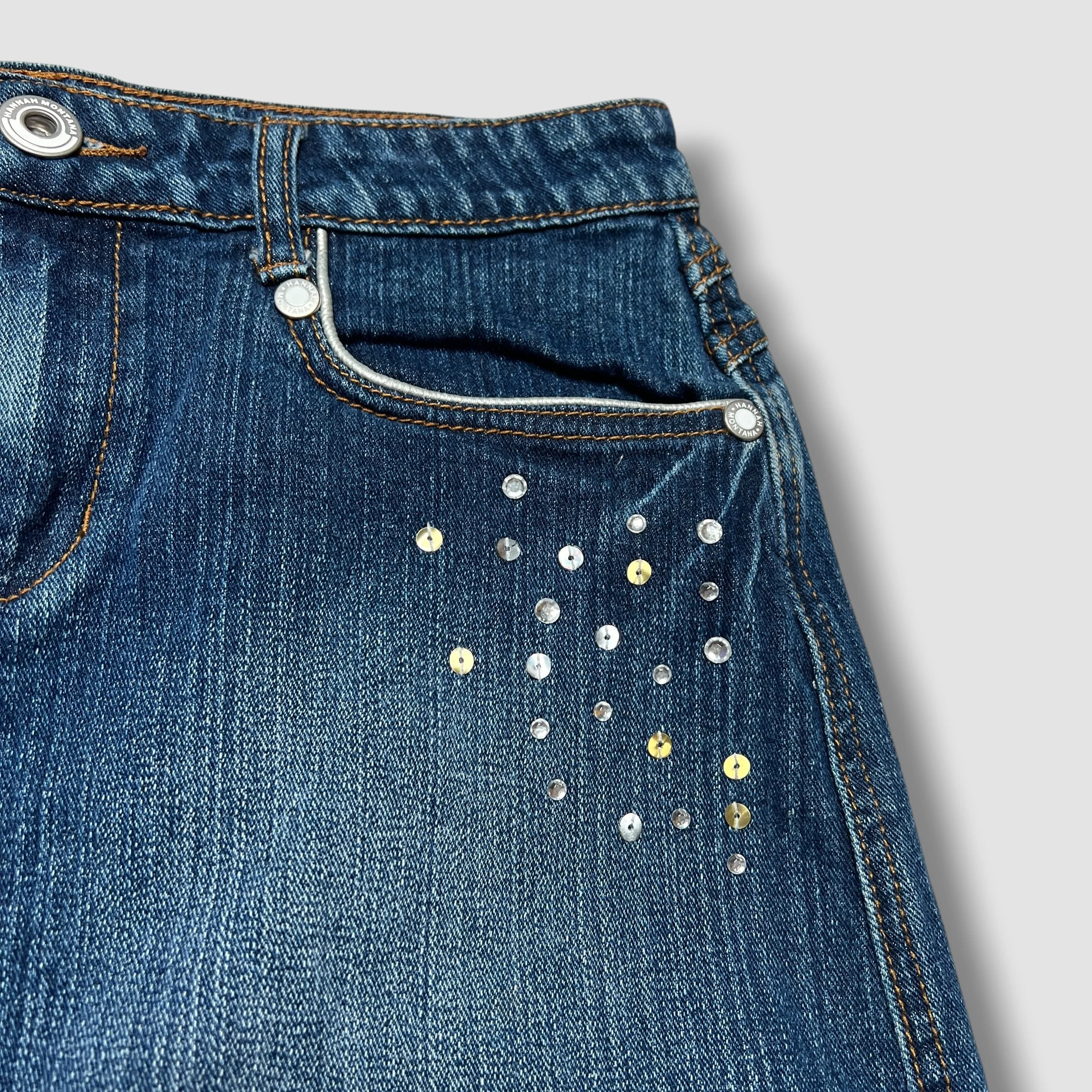 Hannah Montana Y2K Denim Sequin Rhinestone Mini Skirt