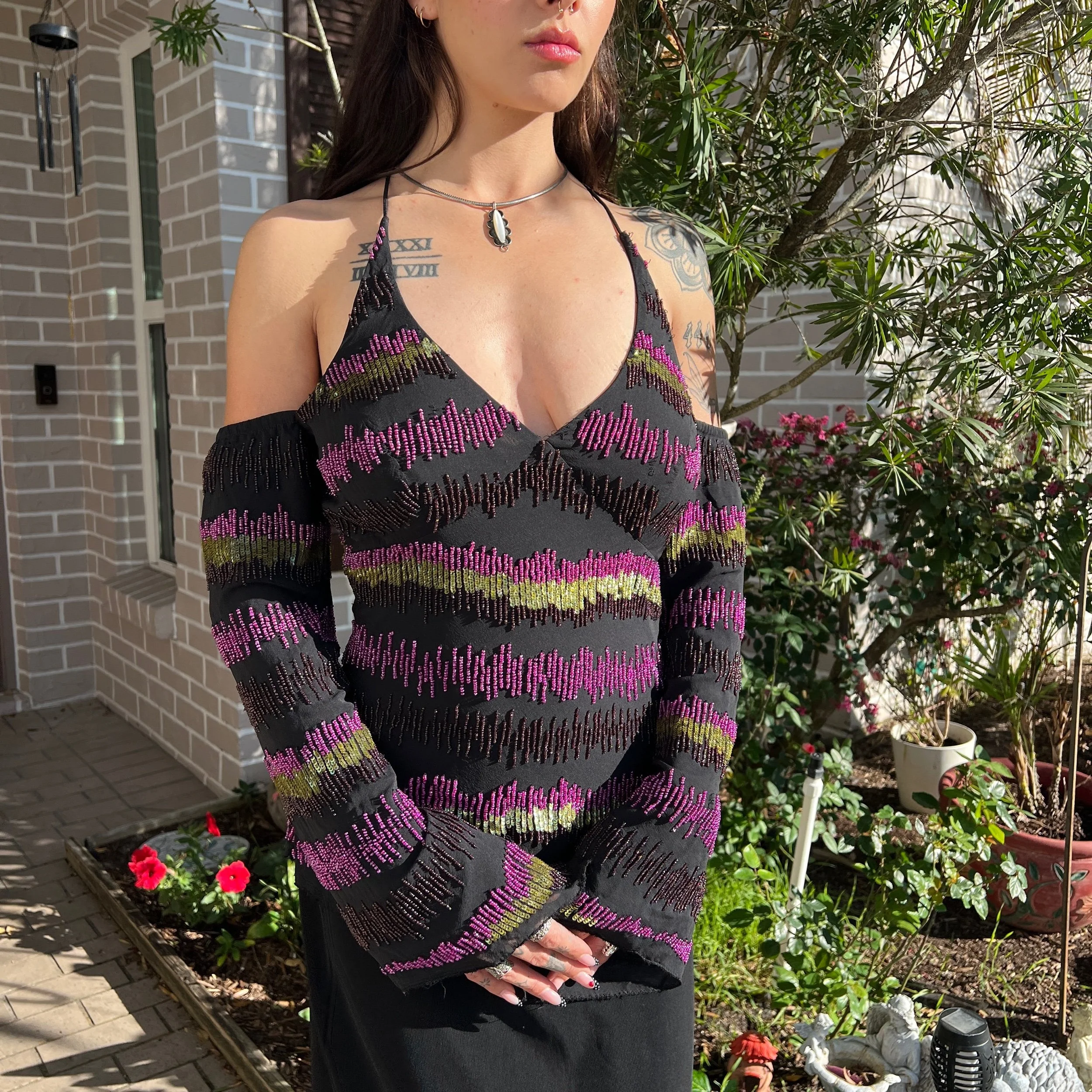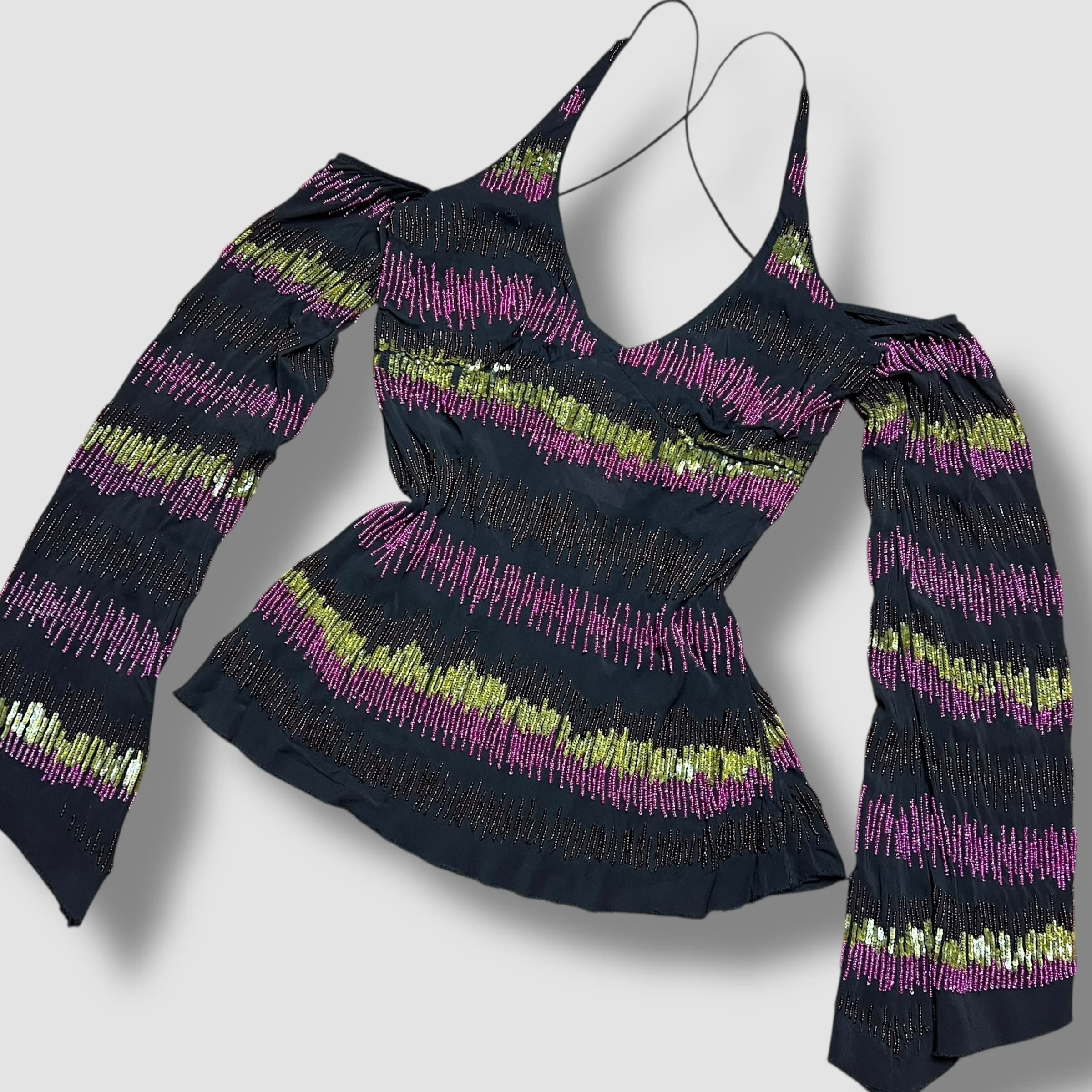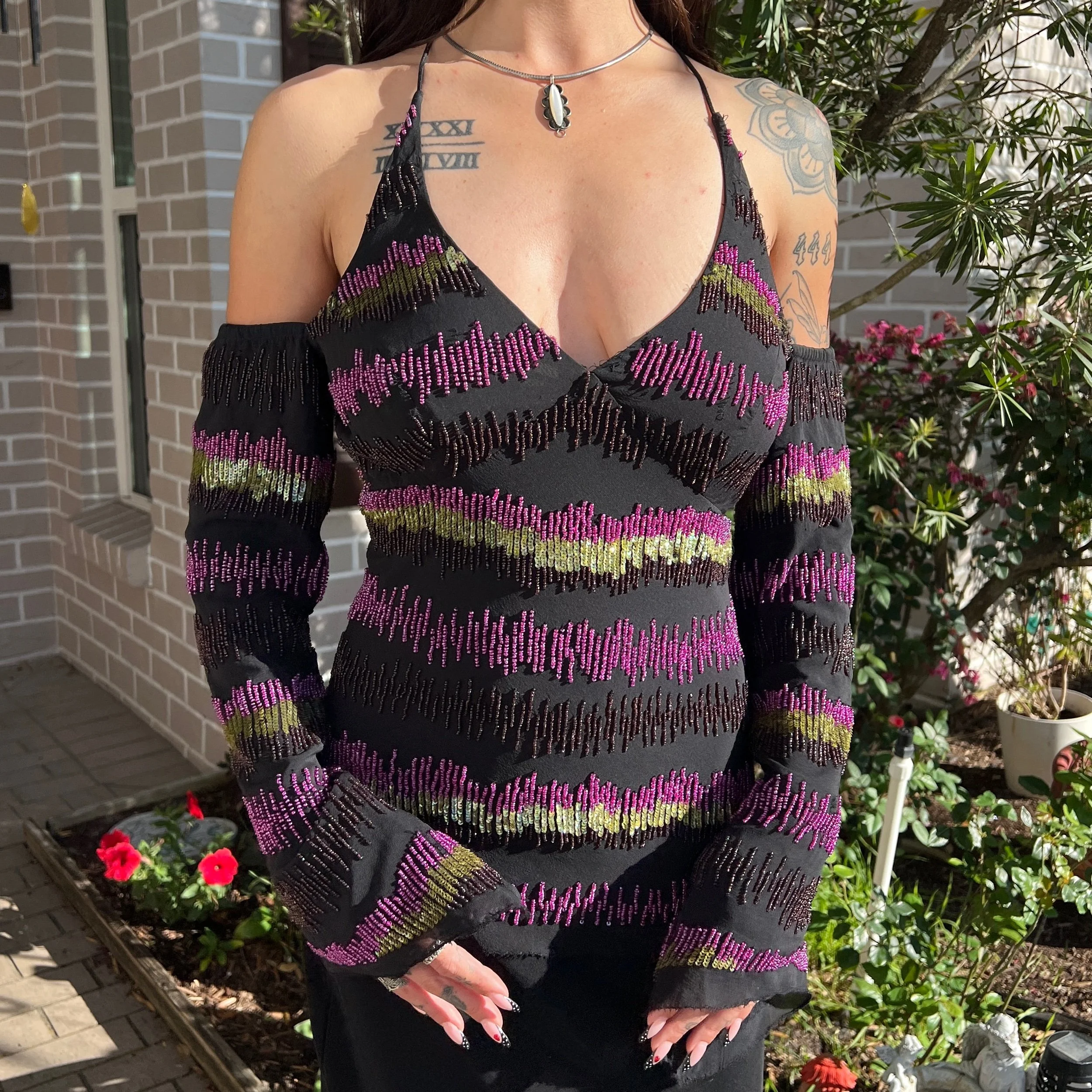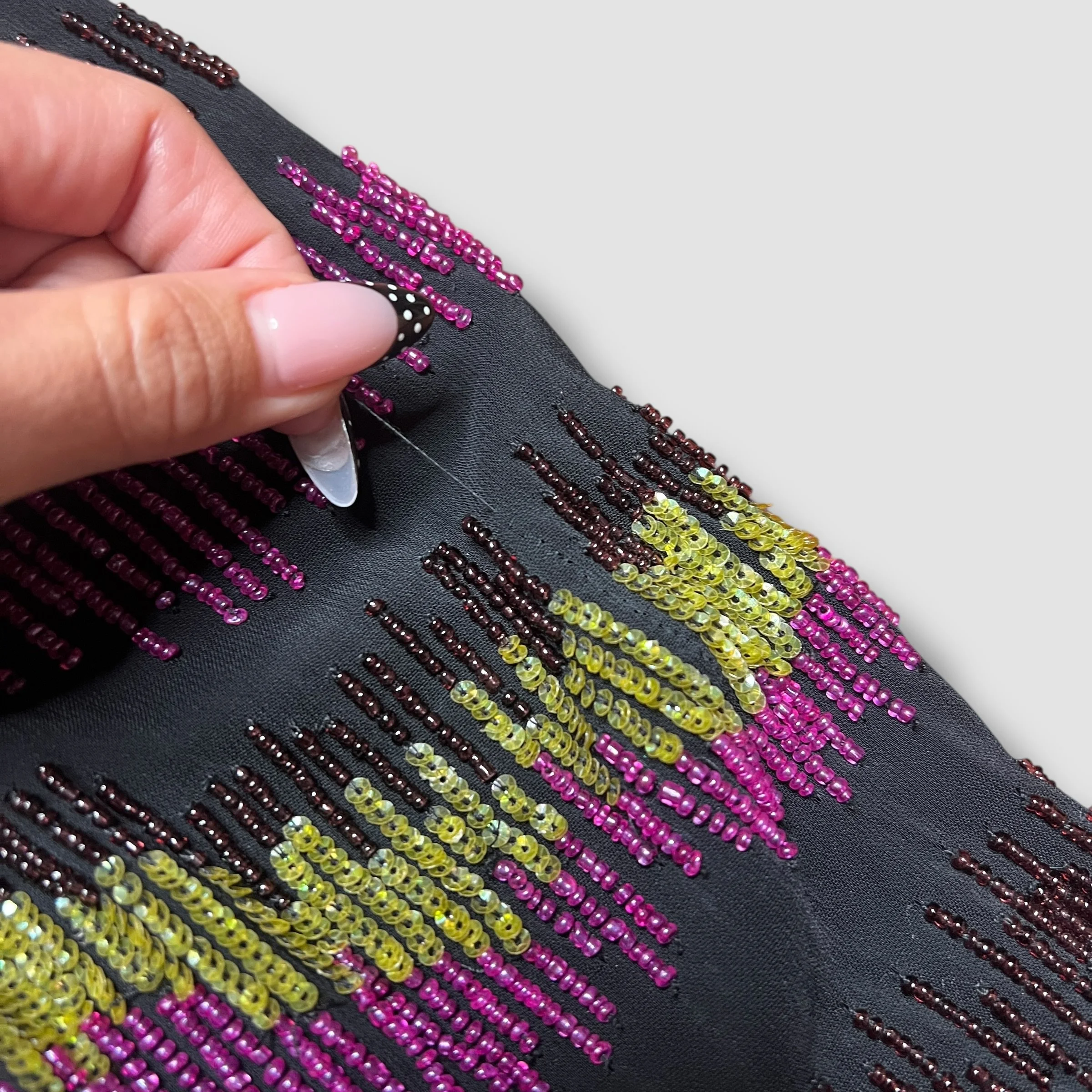 Condition: Deadstock/Good - tag still attached, minor pulls and missing beads as shown in photos