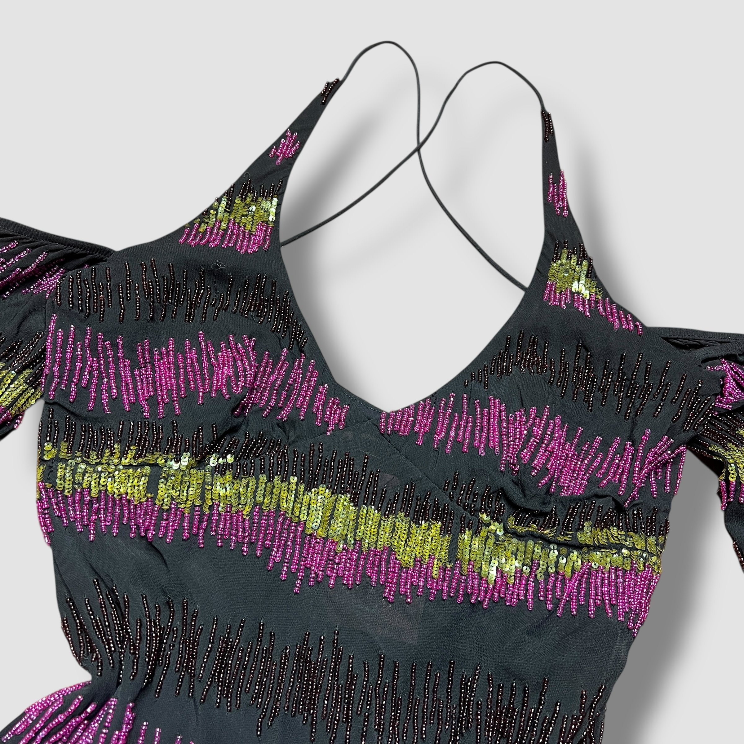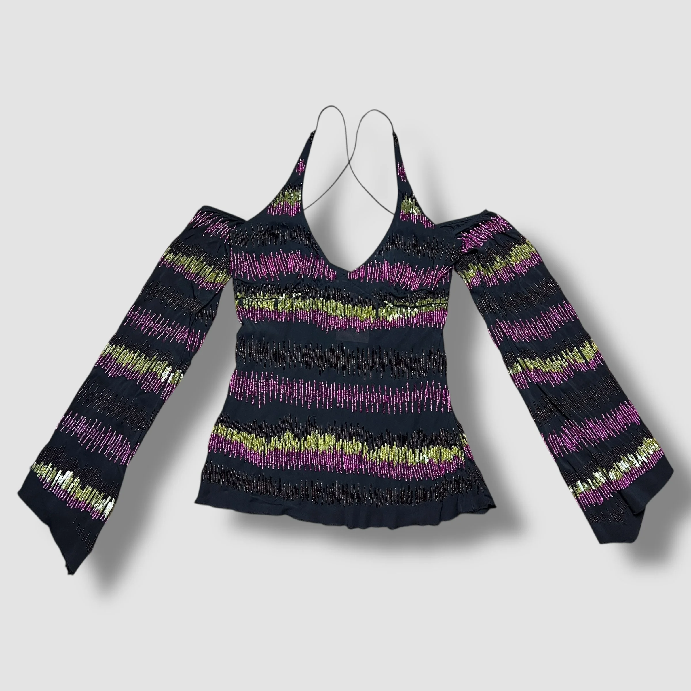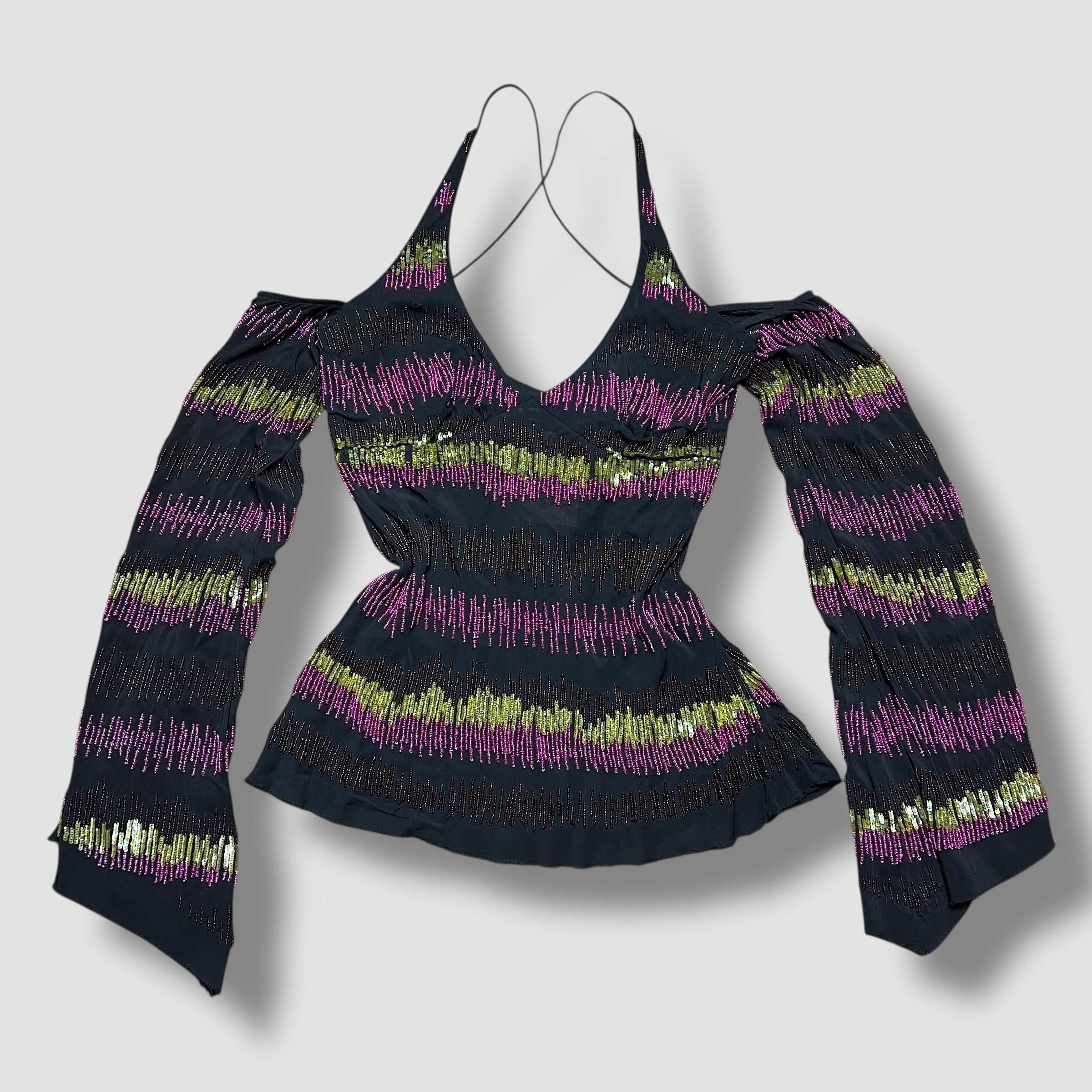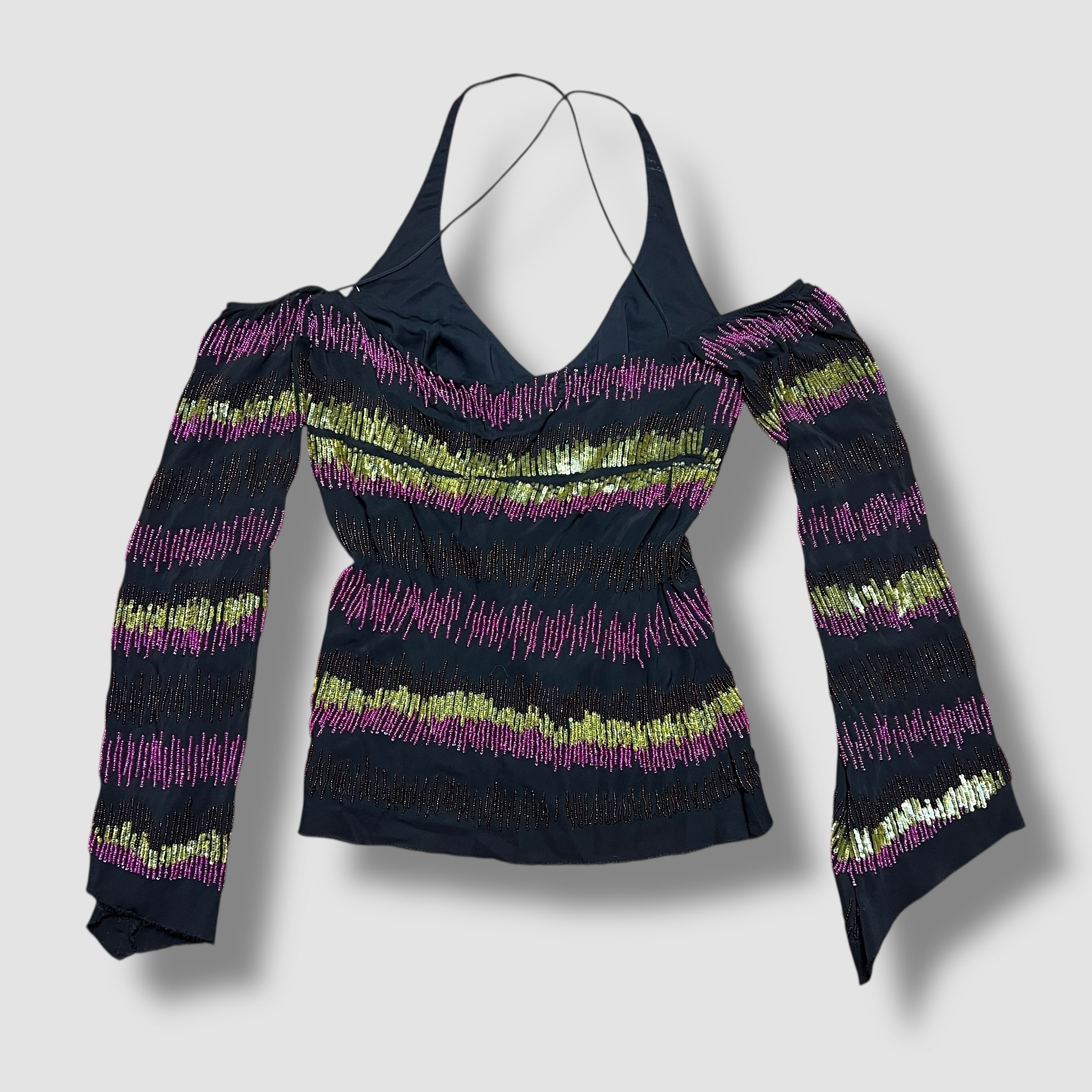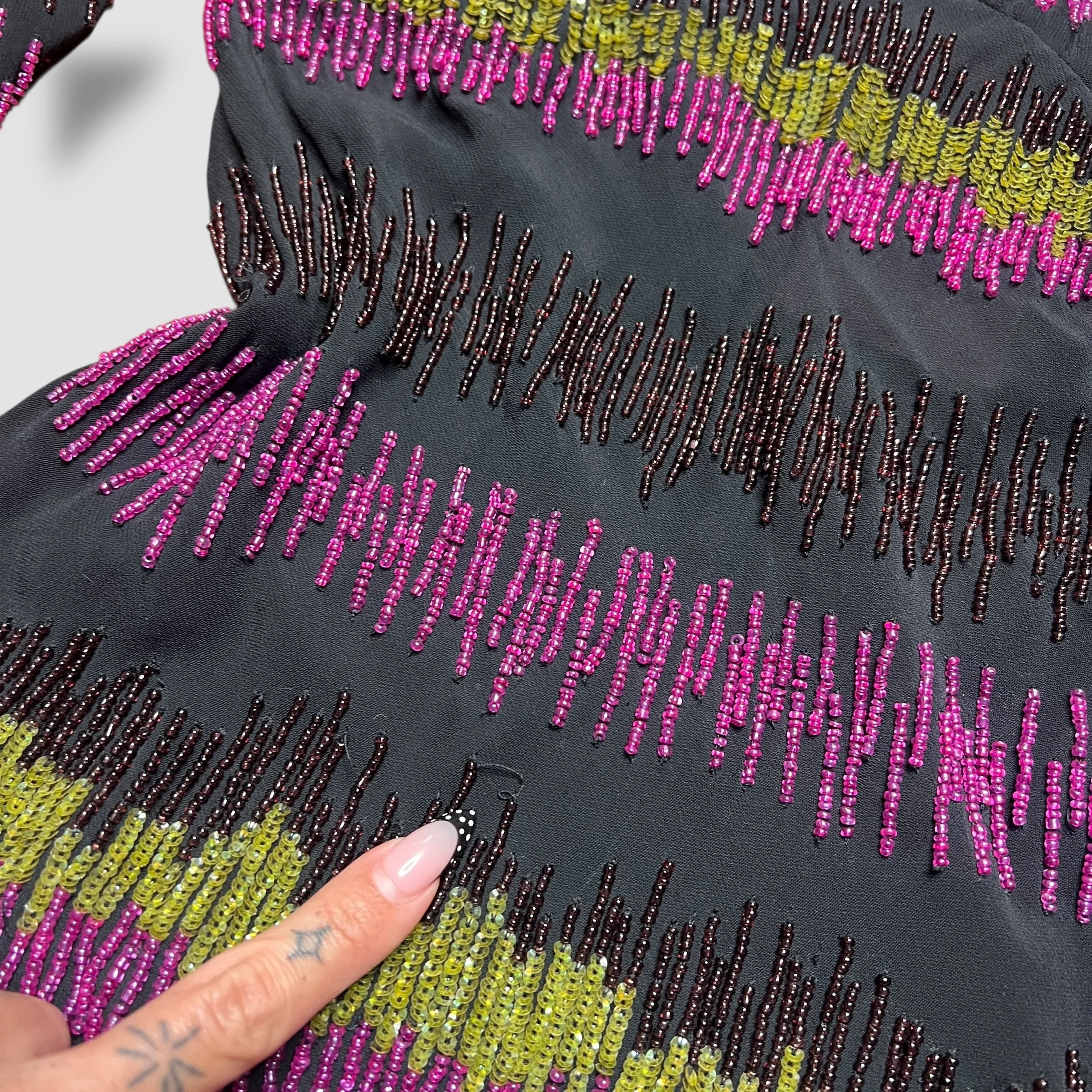 Condition: Deadstock/Good - tag still attached, minor pulls and missing beads as shown in photos