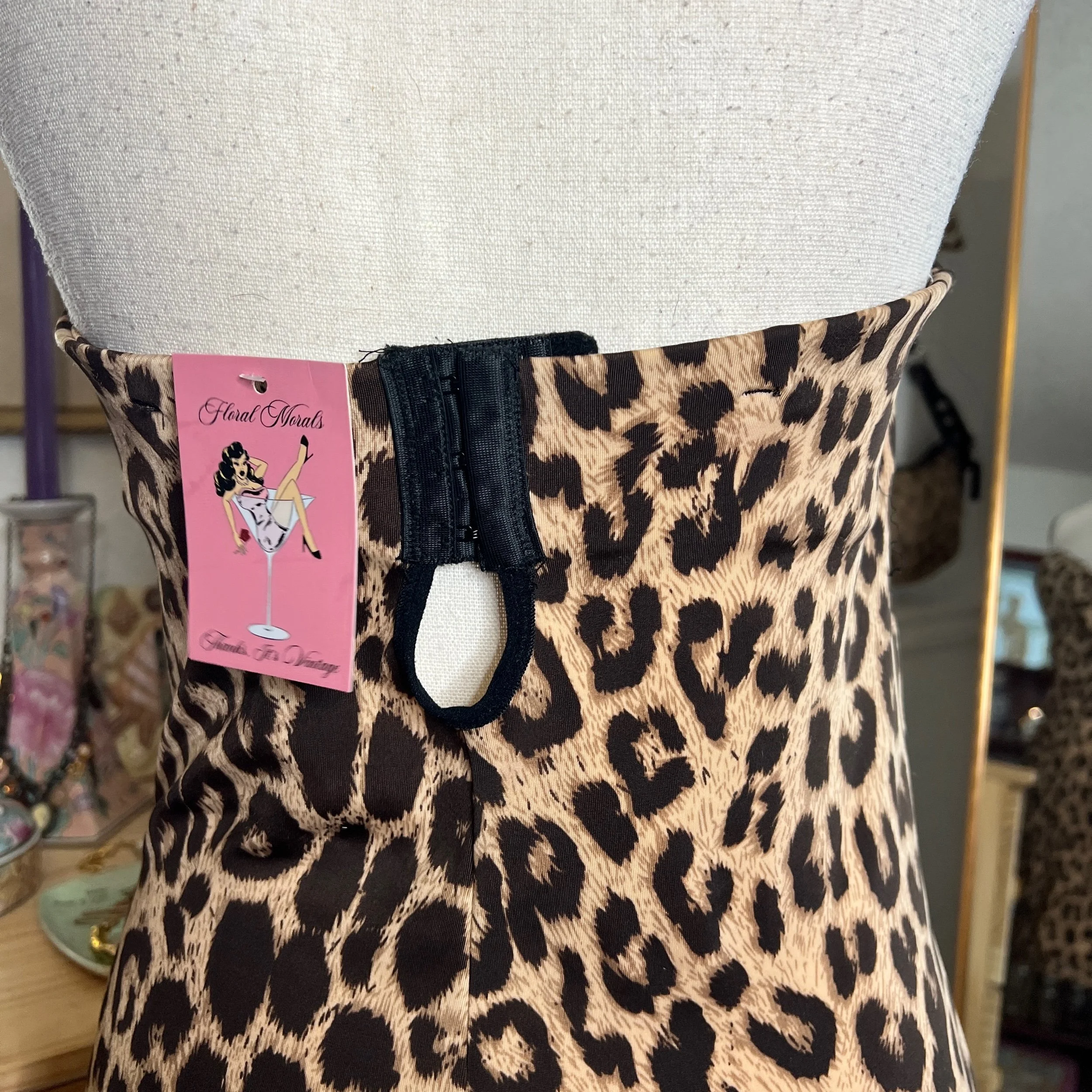 Y2K F.I.T Leopard Print Strapless Bodycon / Cocktail Dress with Built-In Shelf Bra