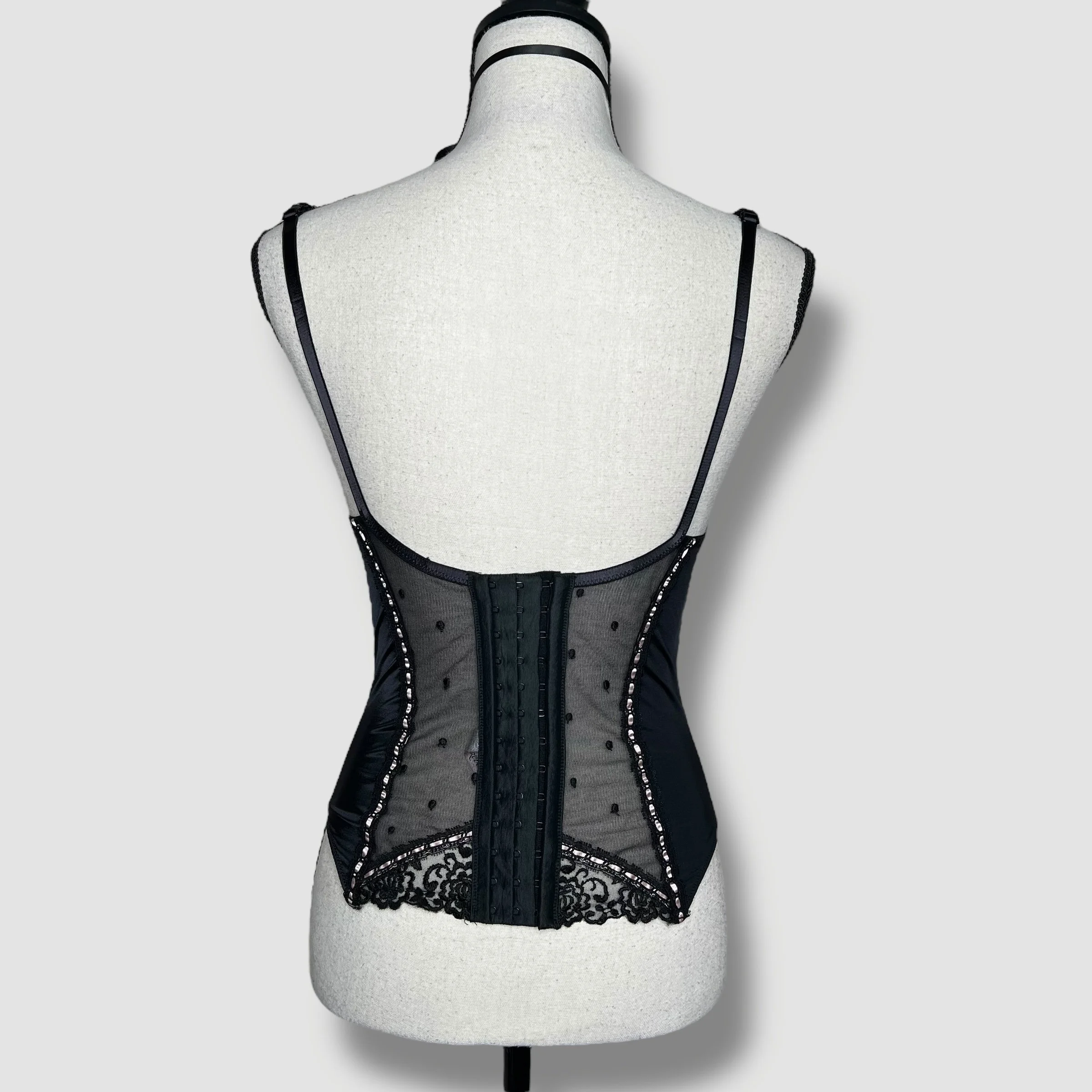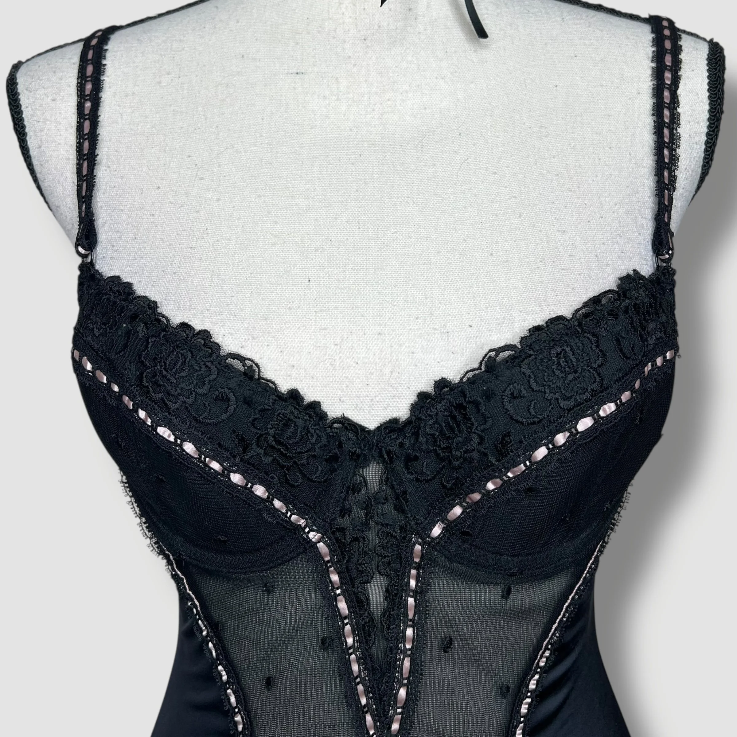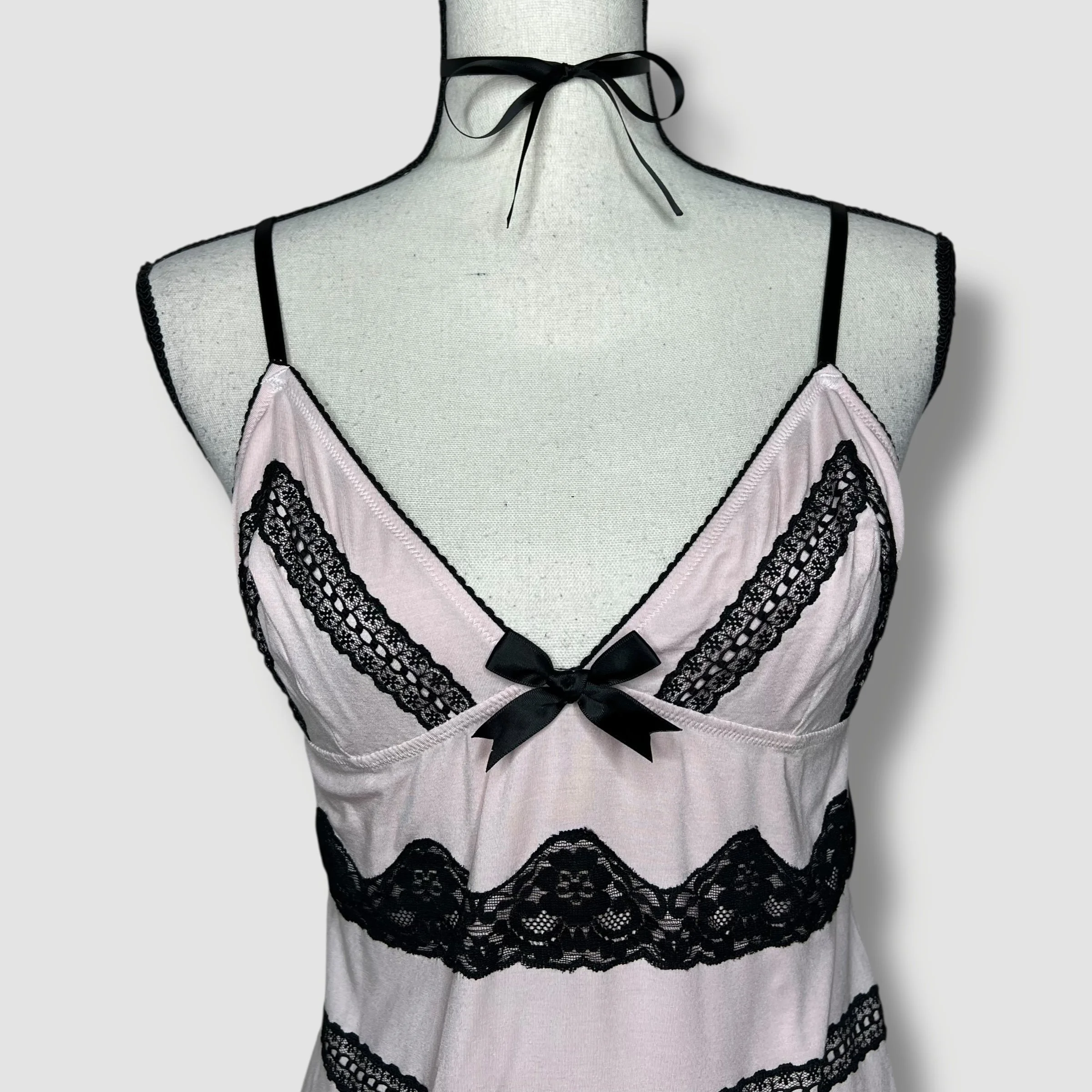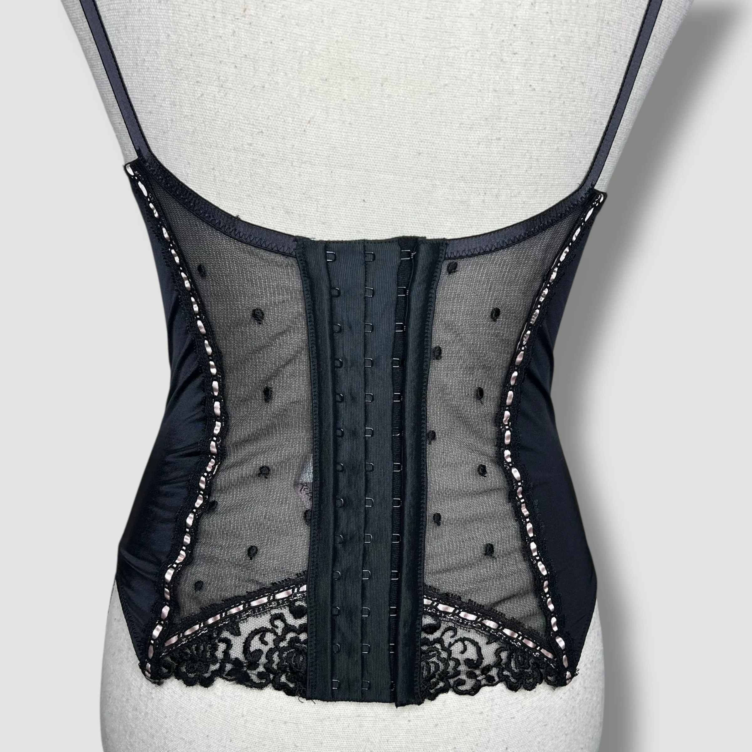 Y2K Charlotte Russe Coquette Black & Baby Pink Bow Lacey & Mesh Corset Top