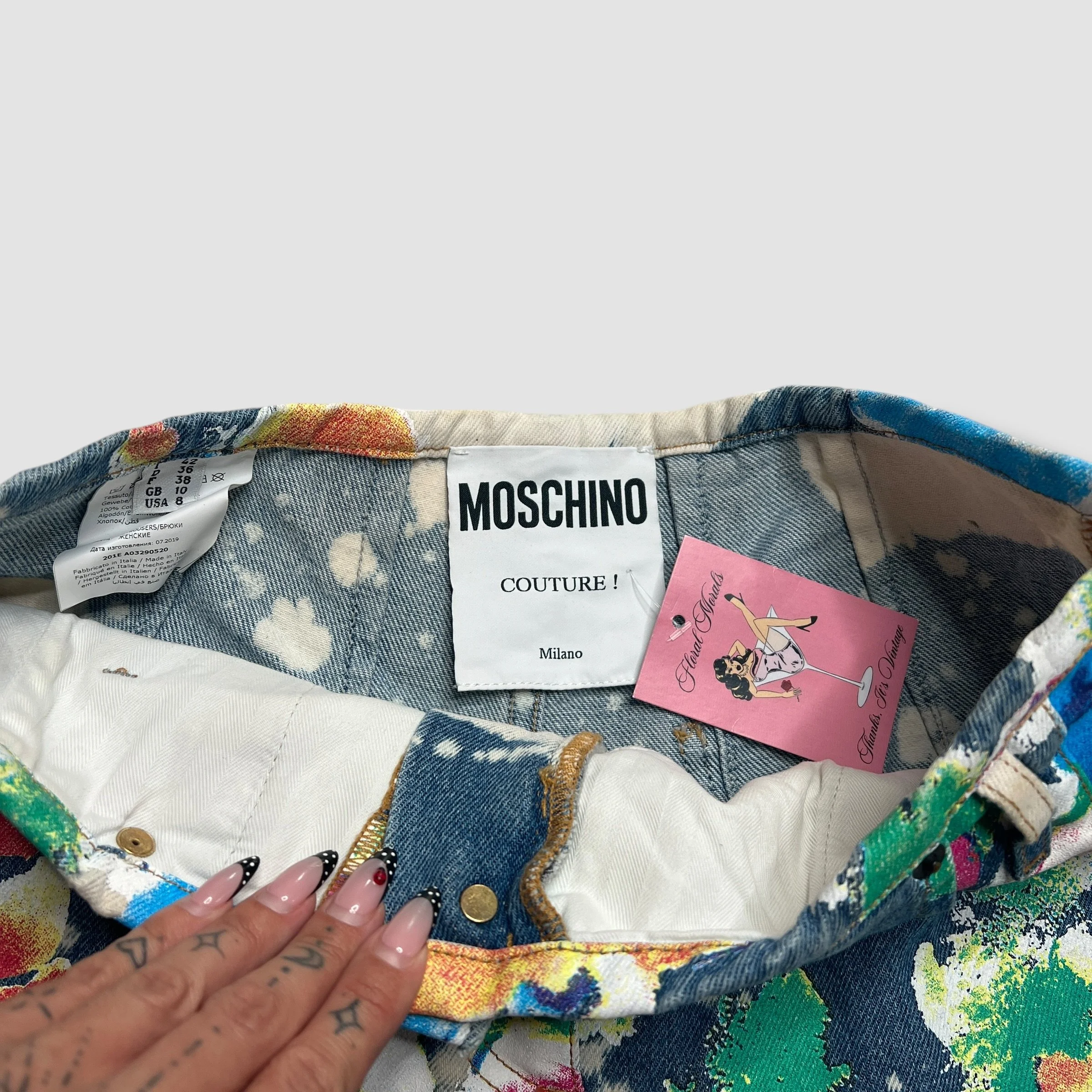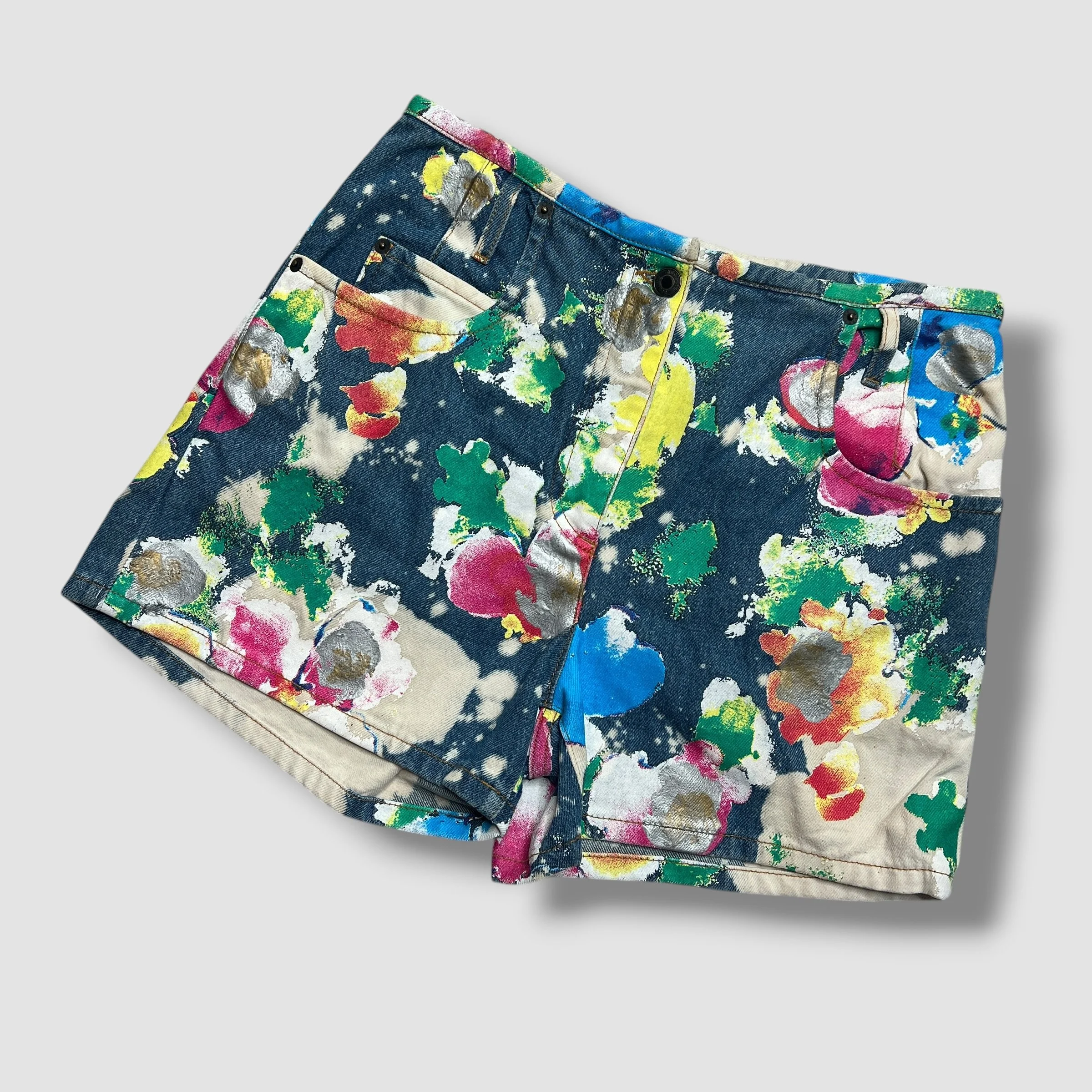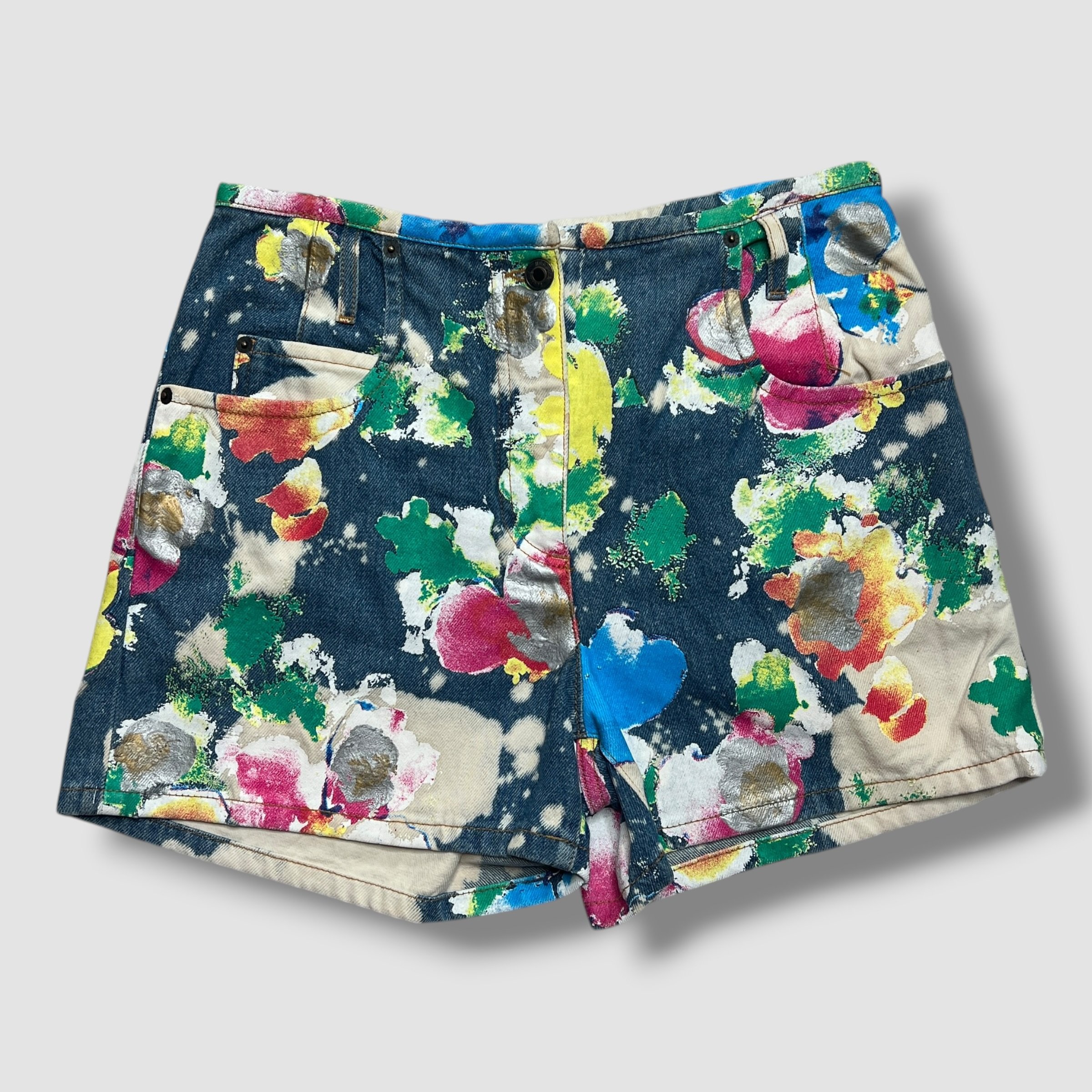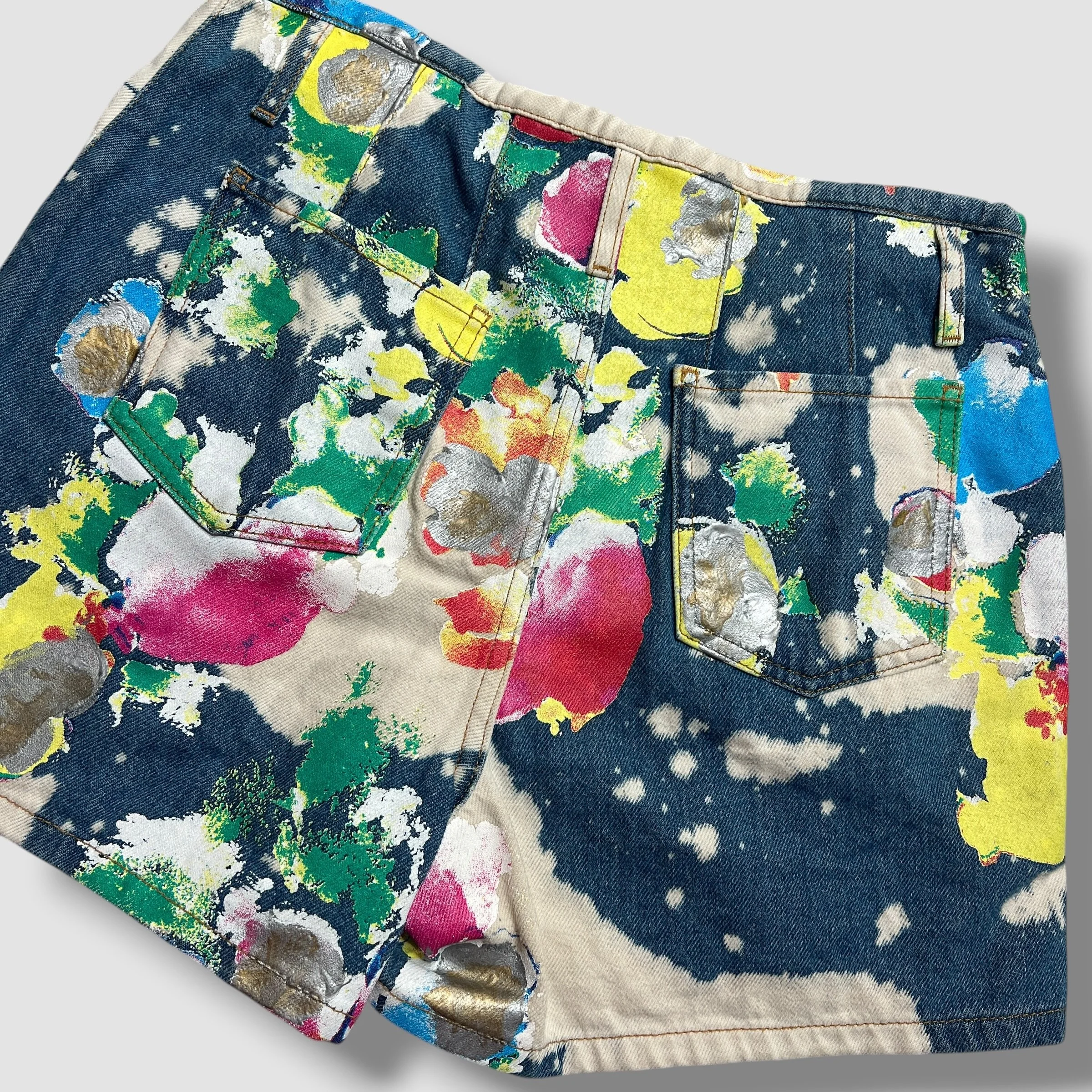 Moschino Couture Designer Painted Denim Fantasy Print Shorts