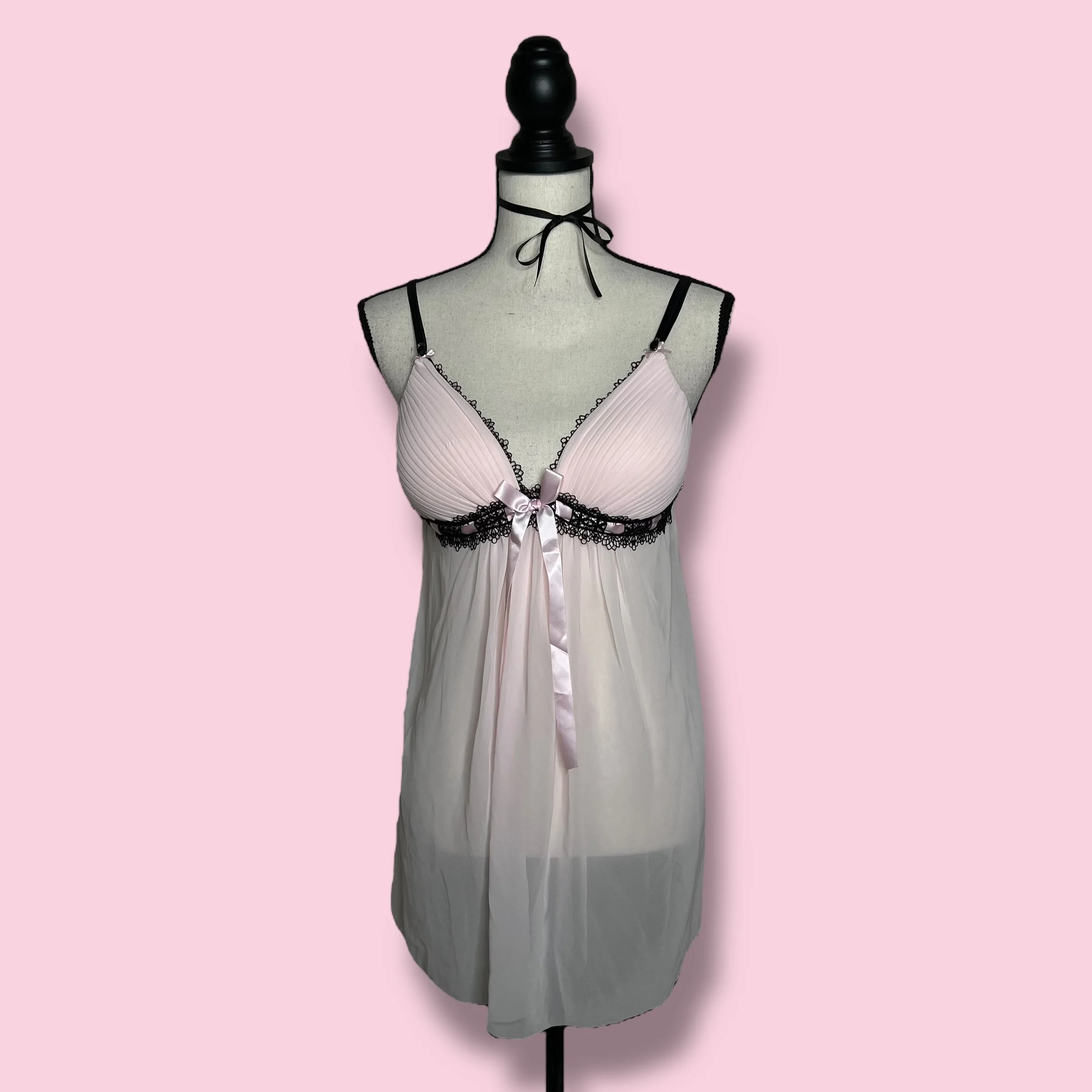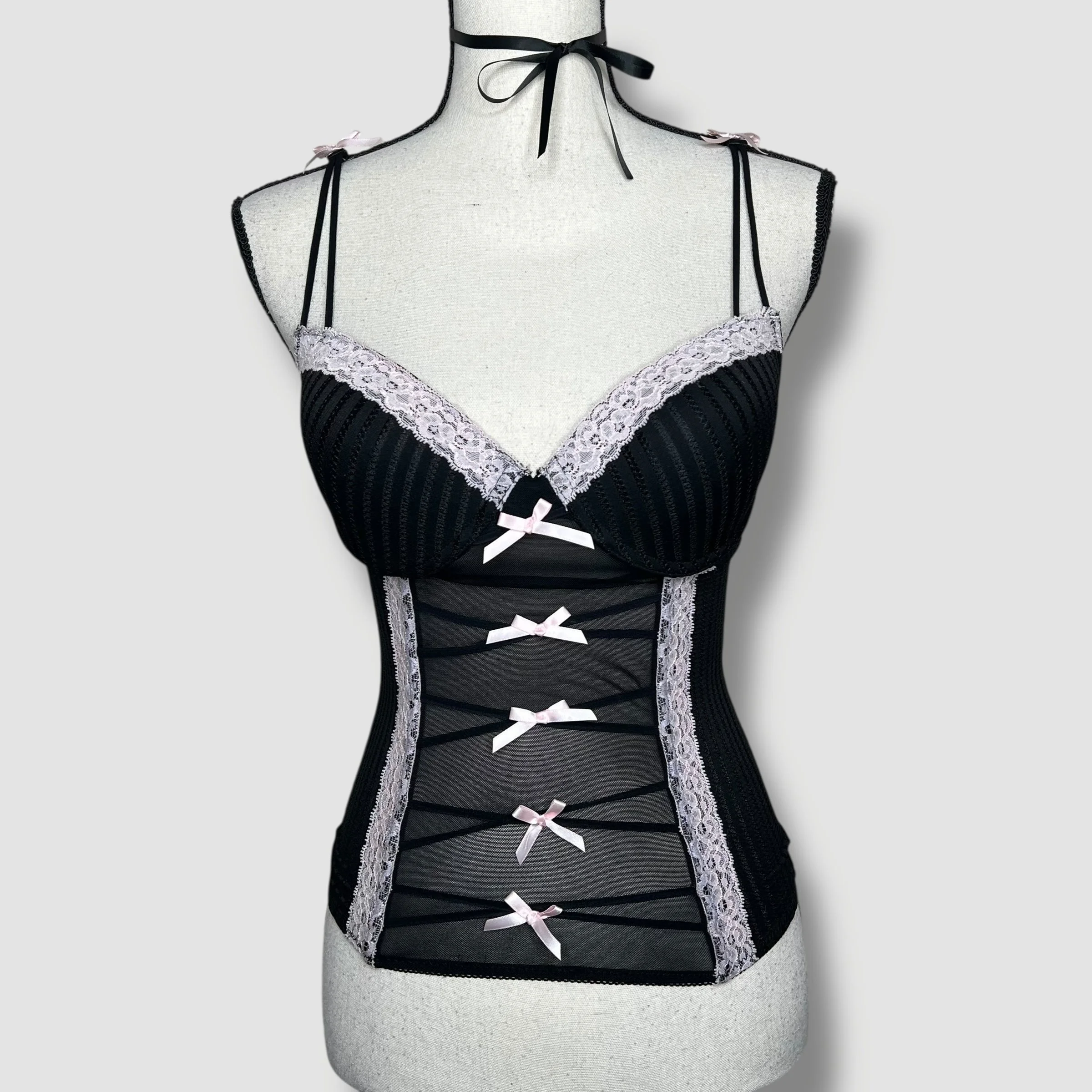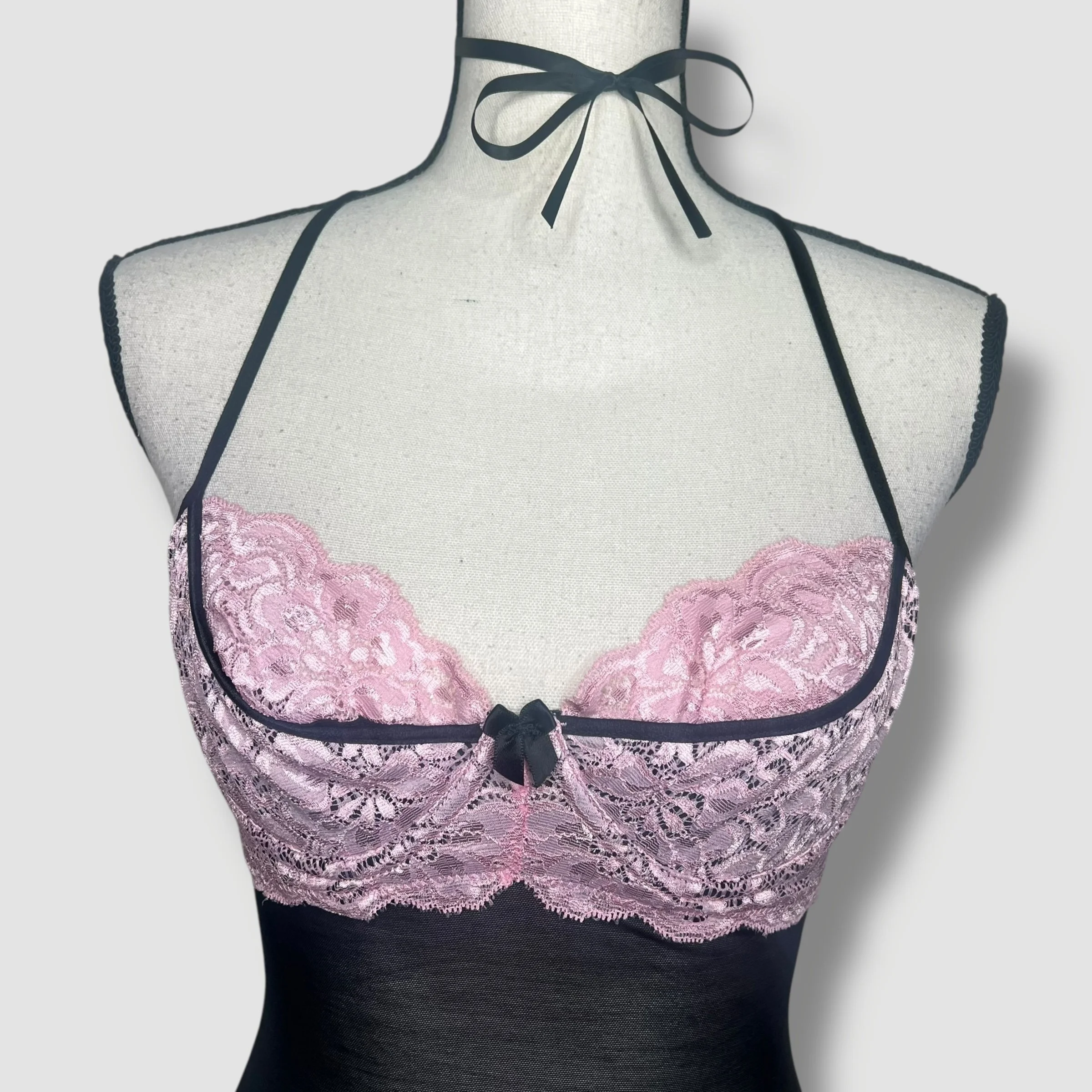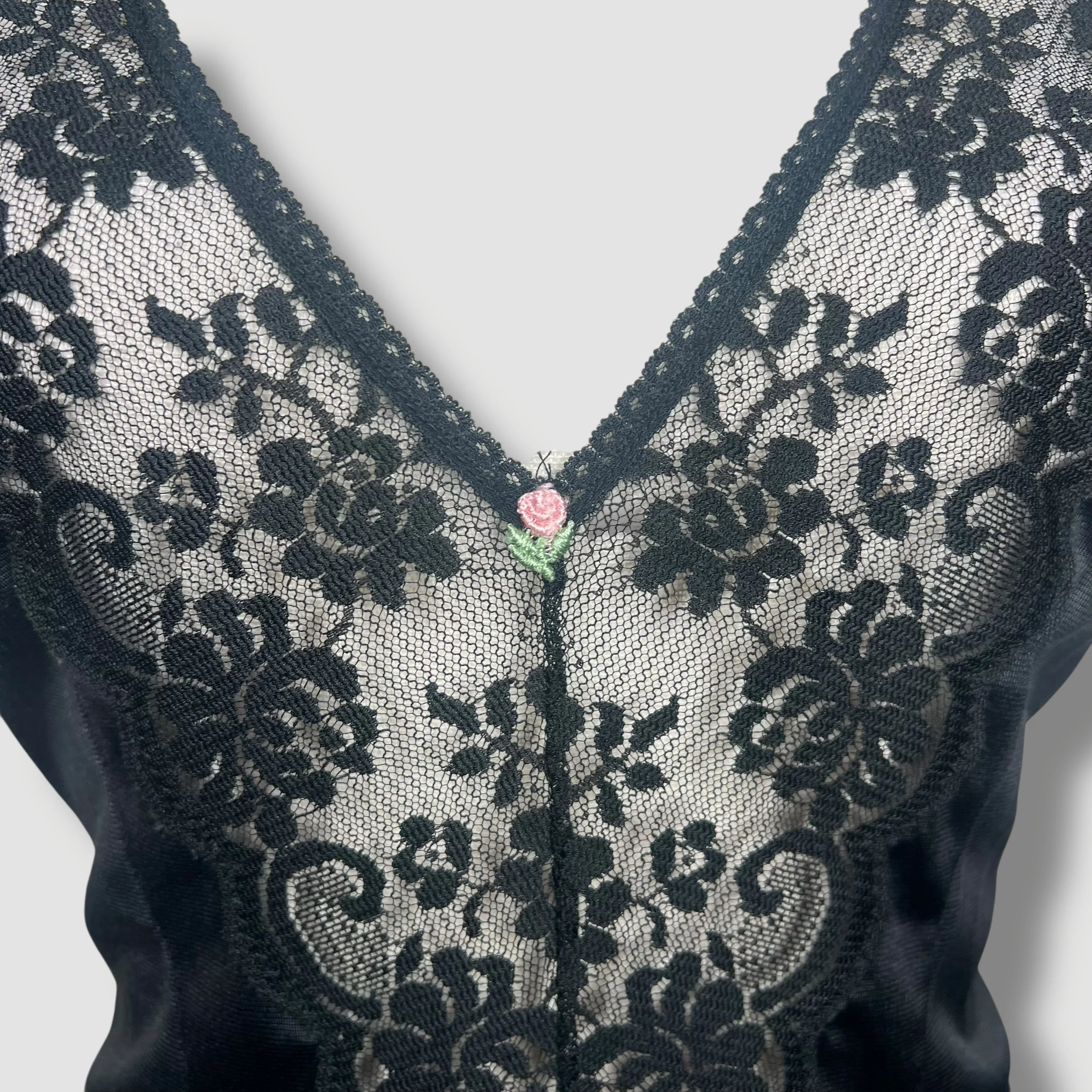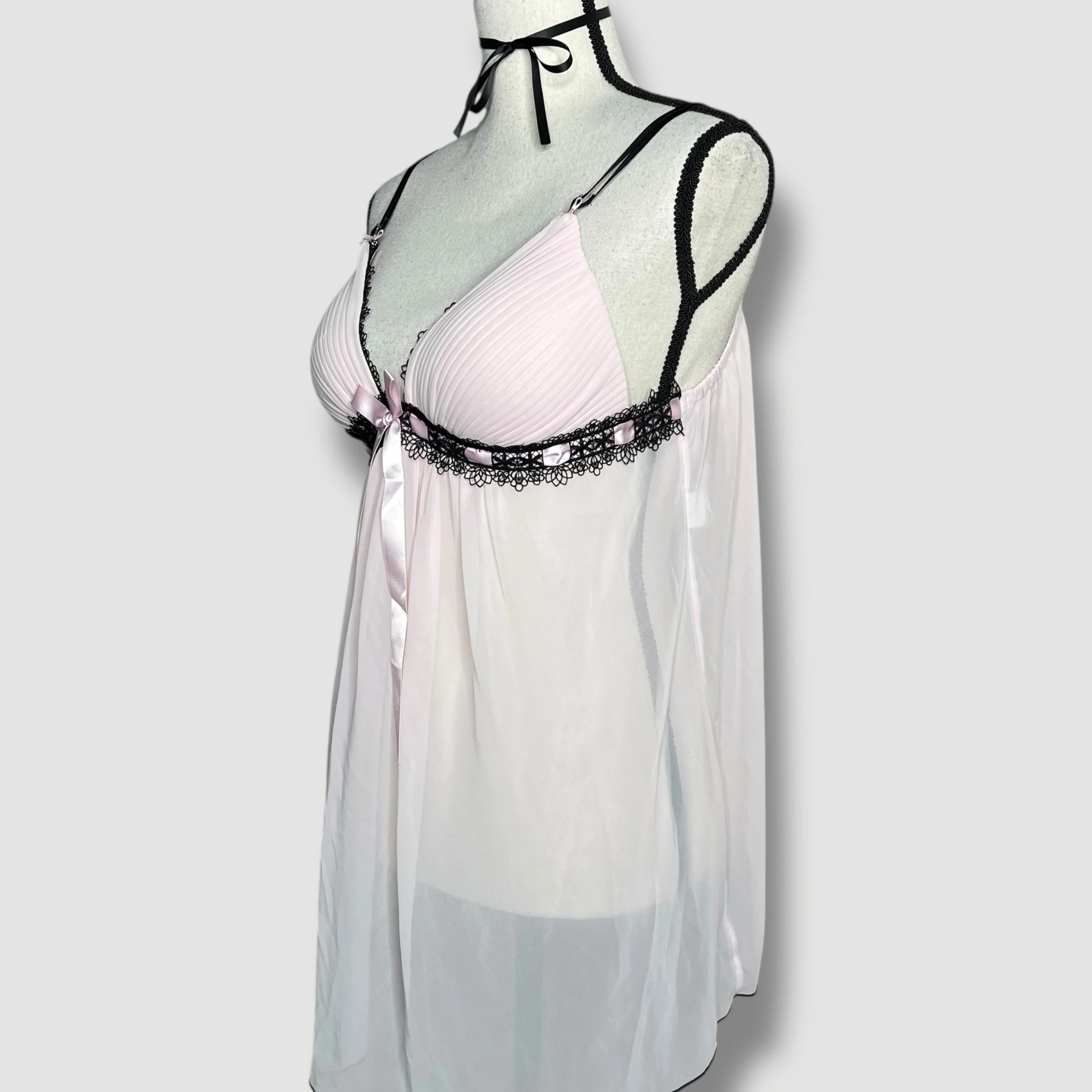 Vintage Black Lace Slip Dress With Baby Pink Bows