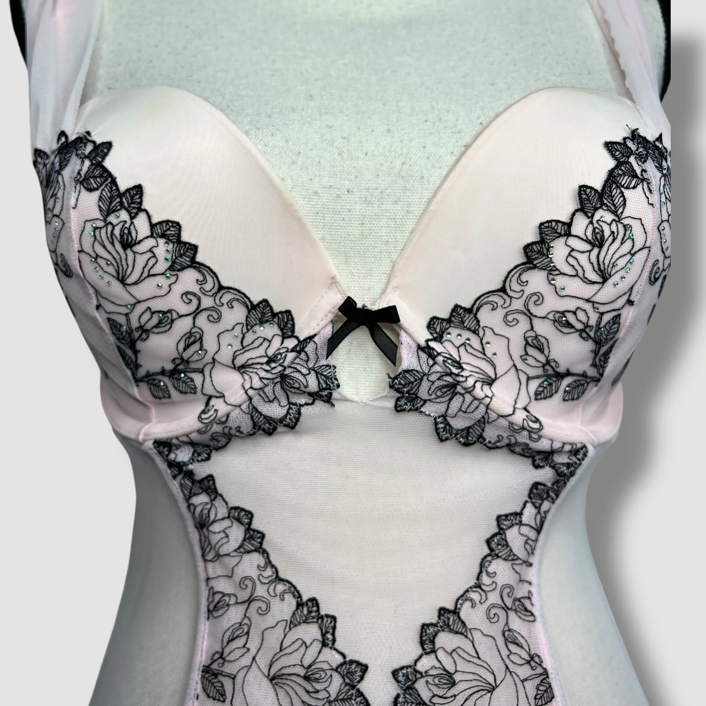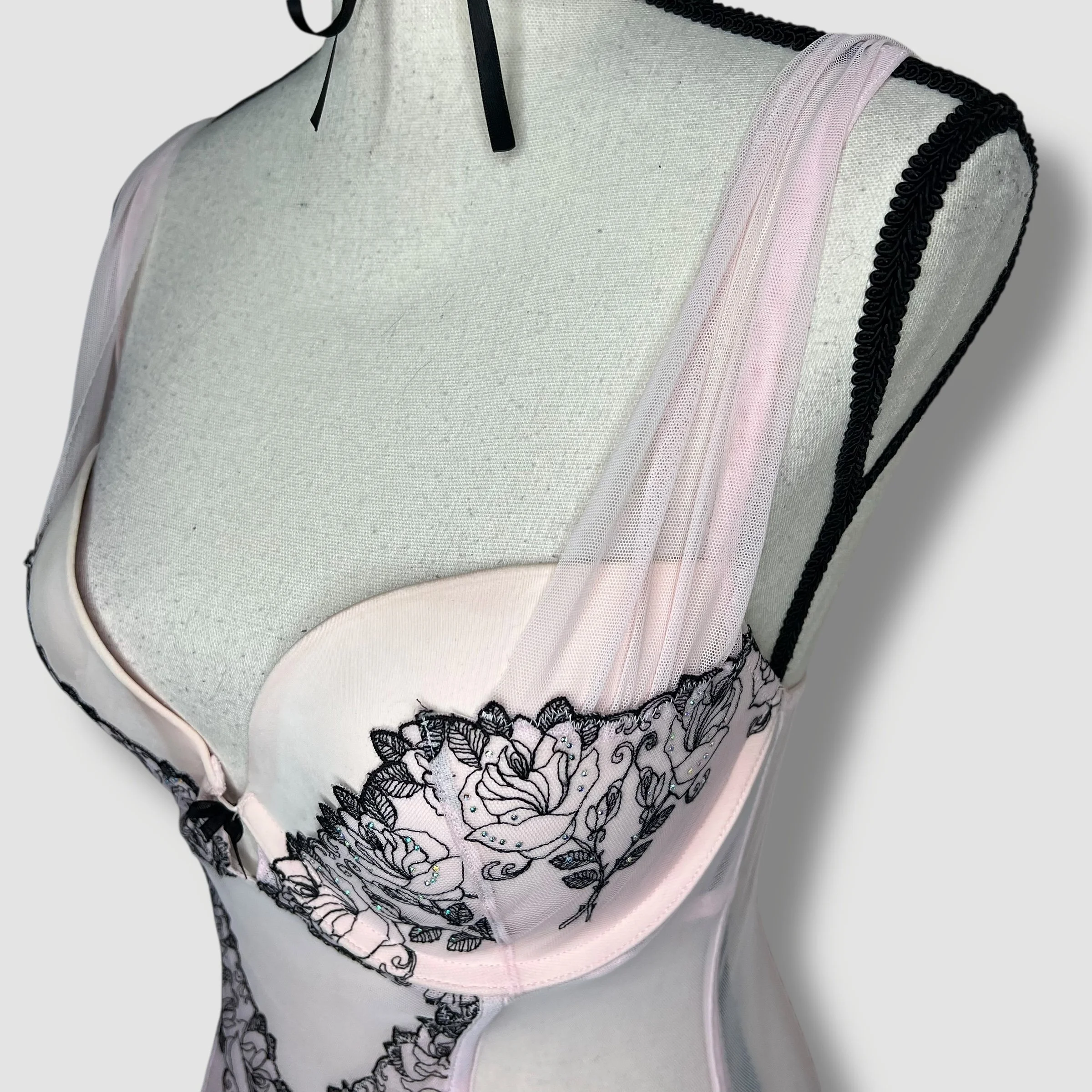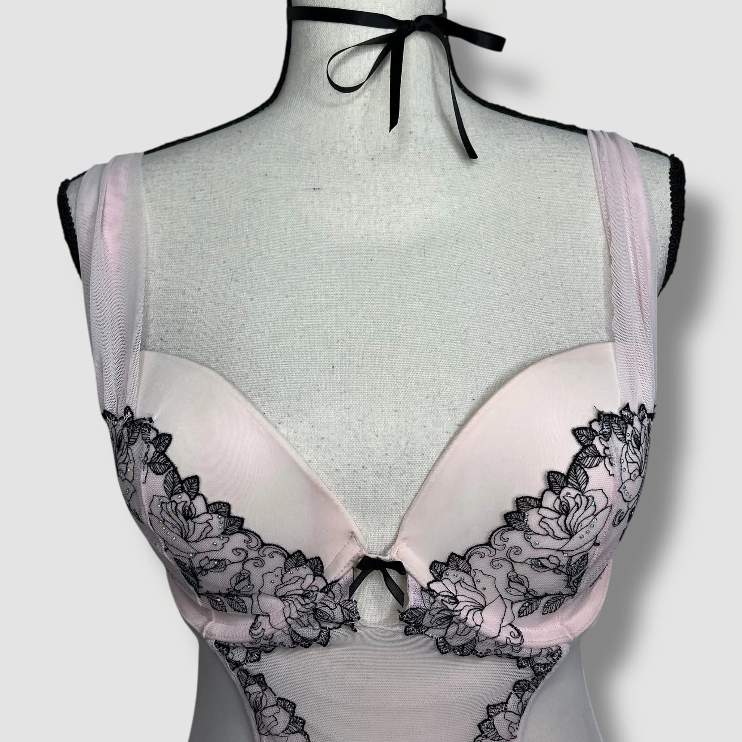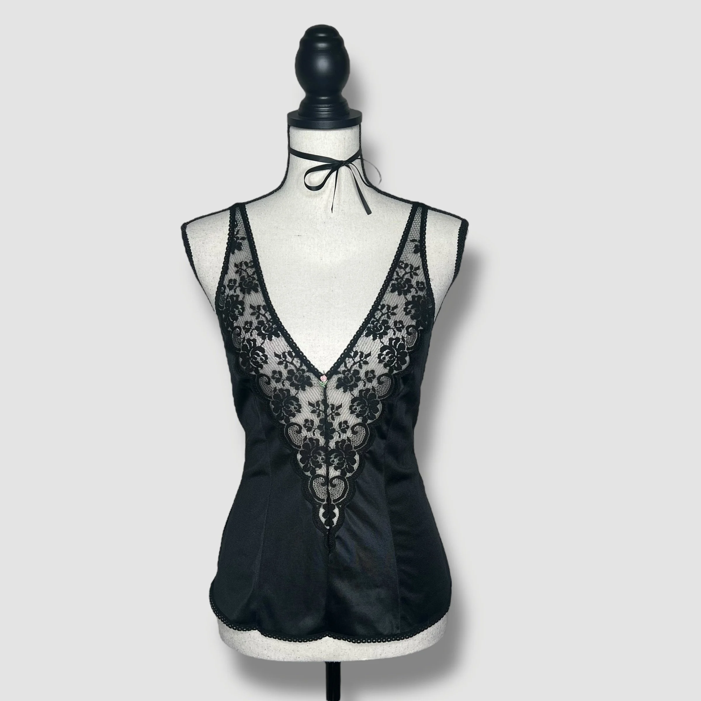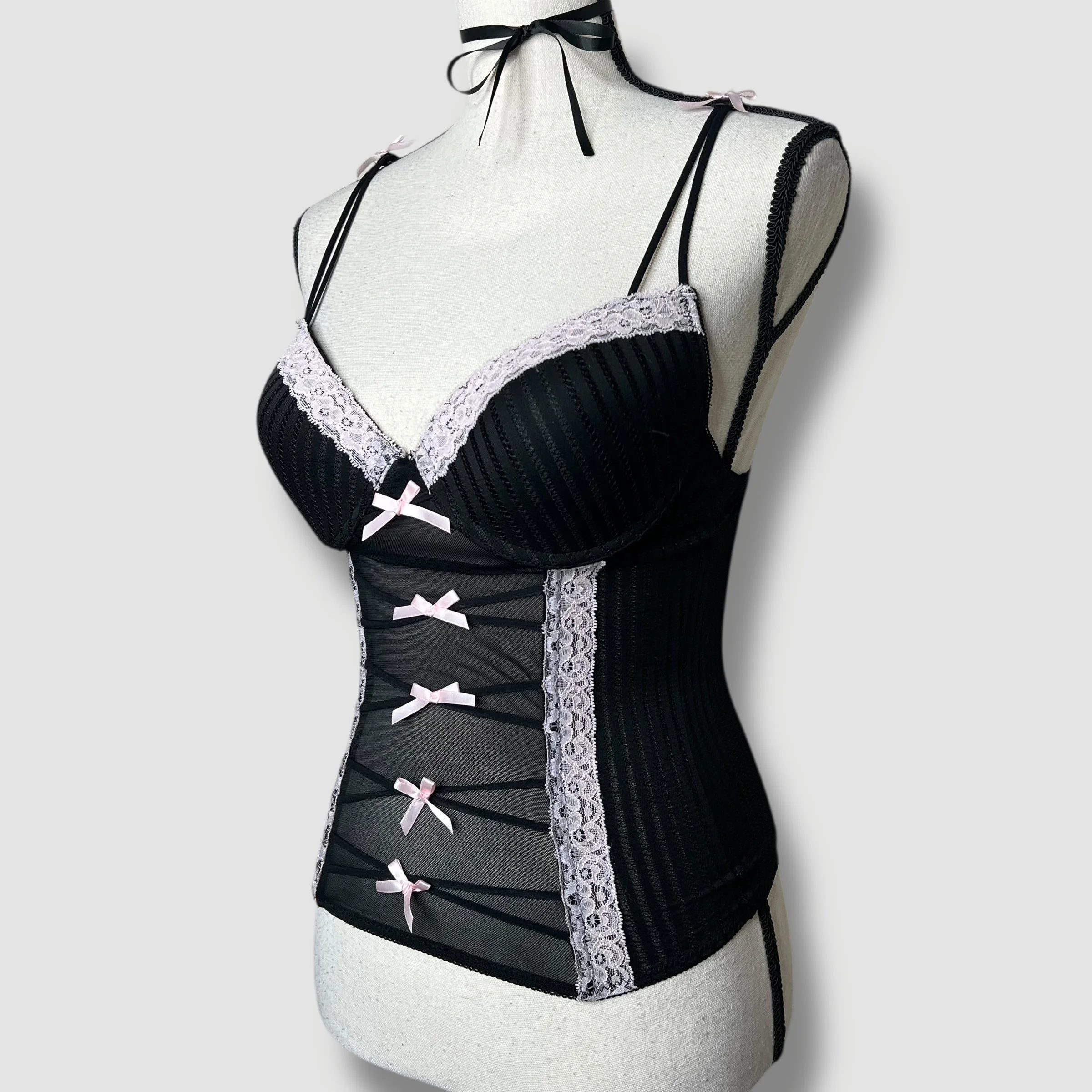 Vintage Black Lace Slip Dress With Baby Pink Bows