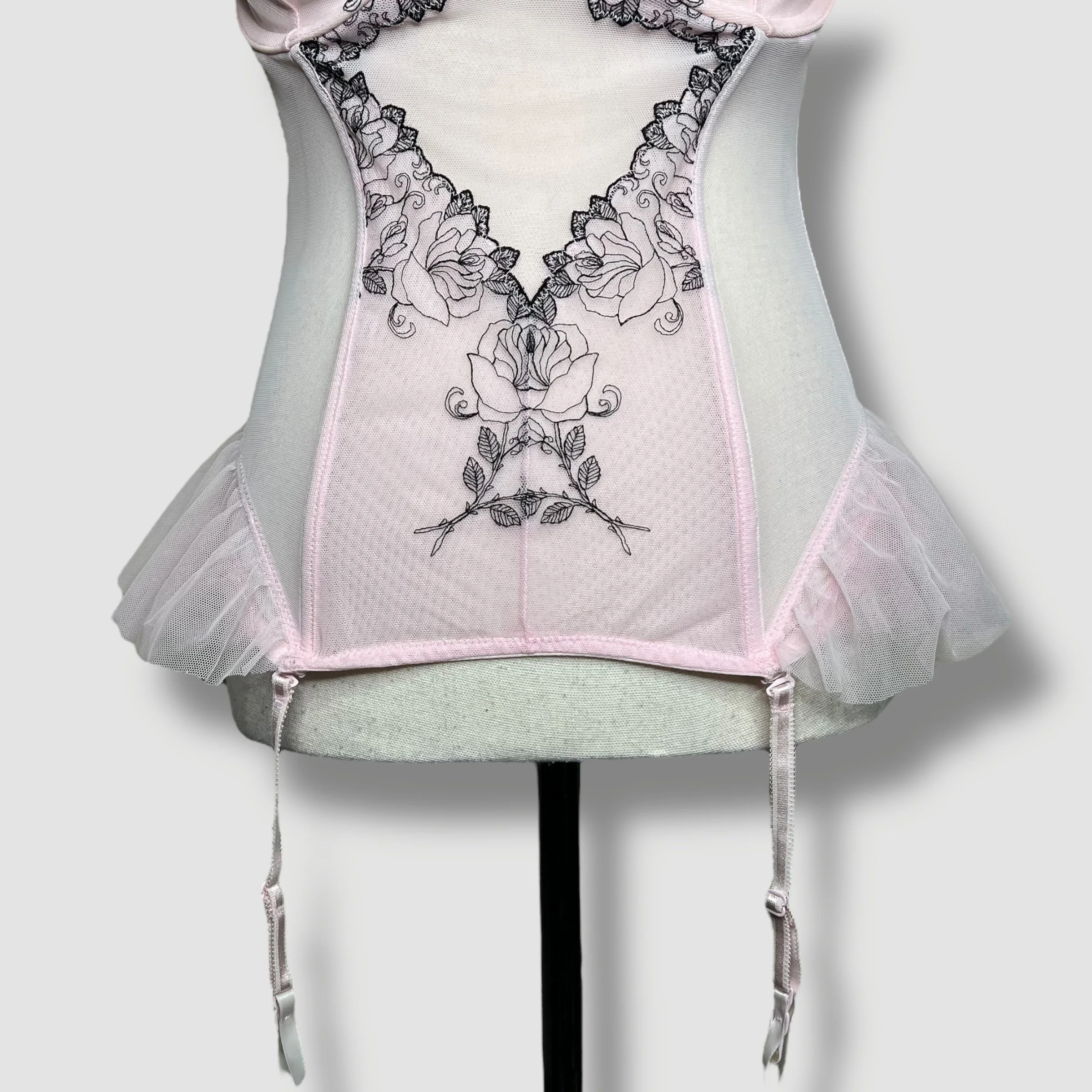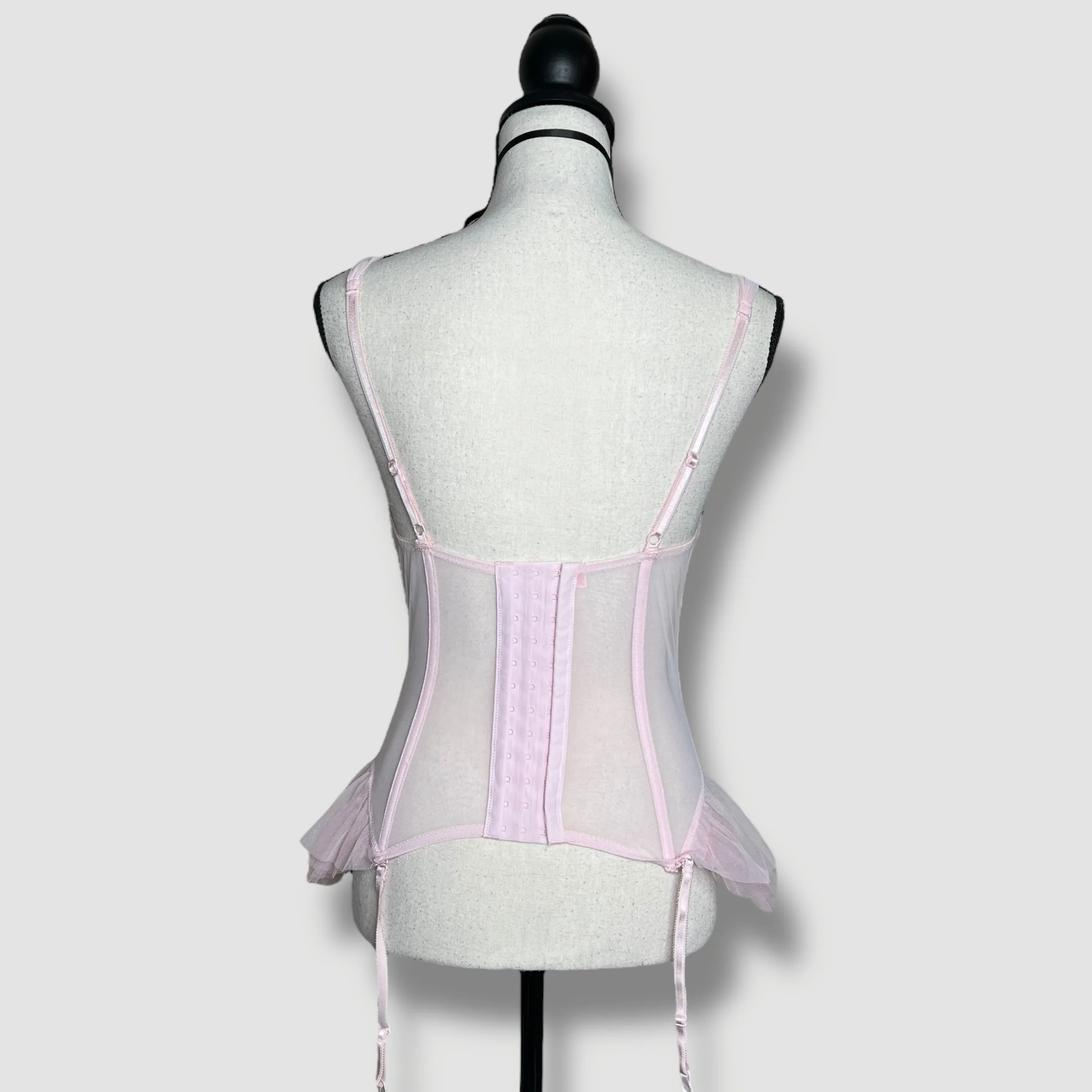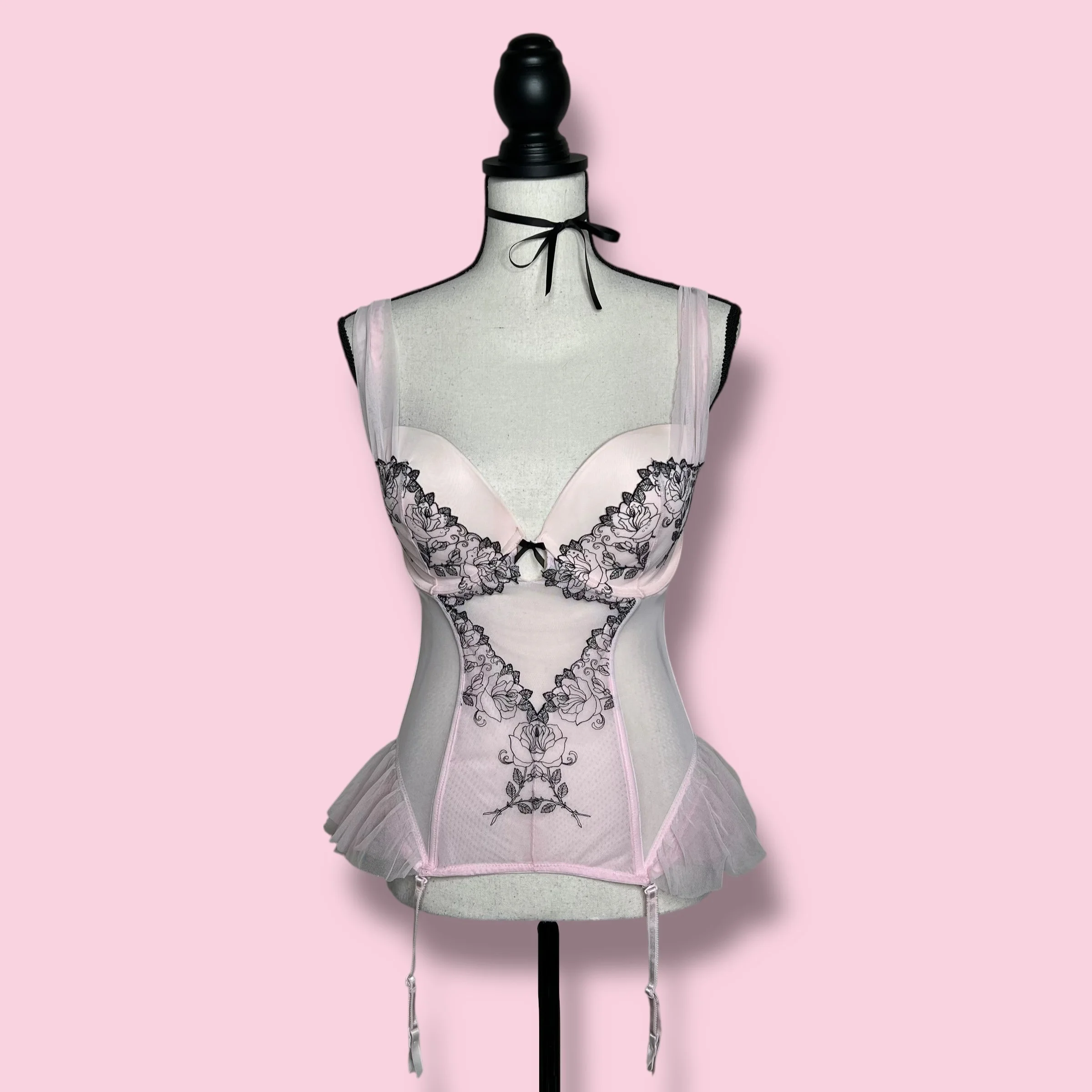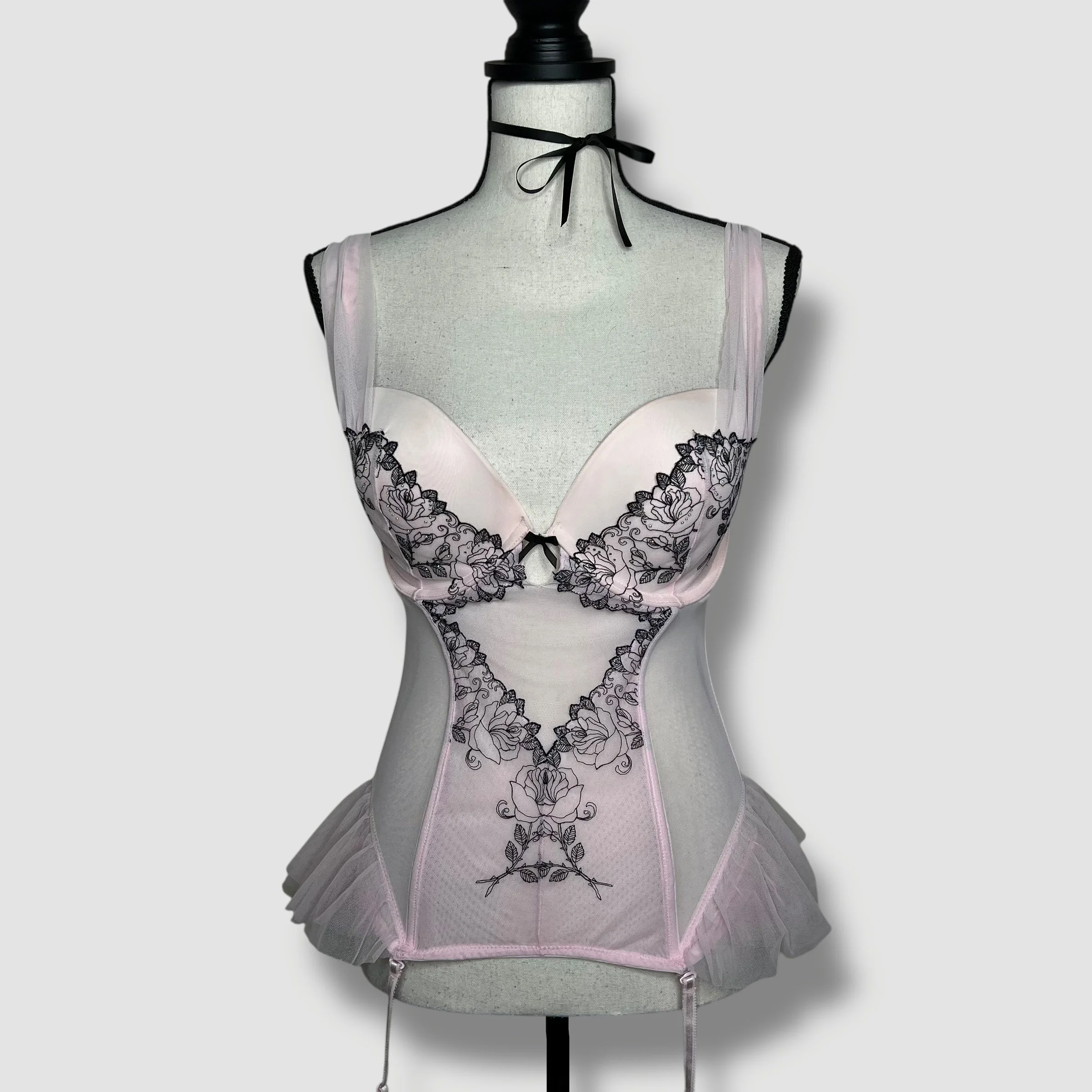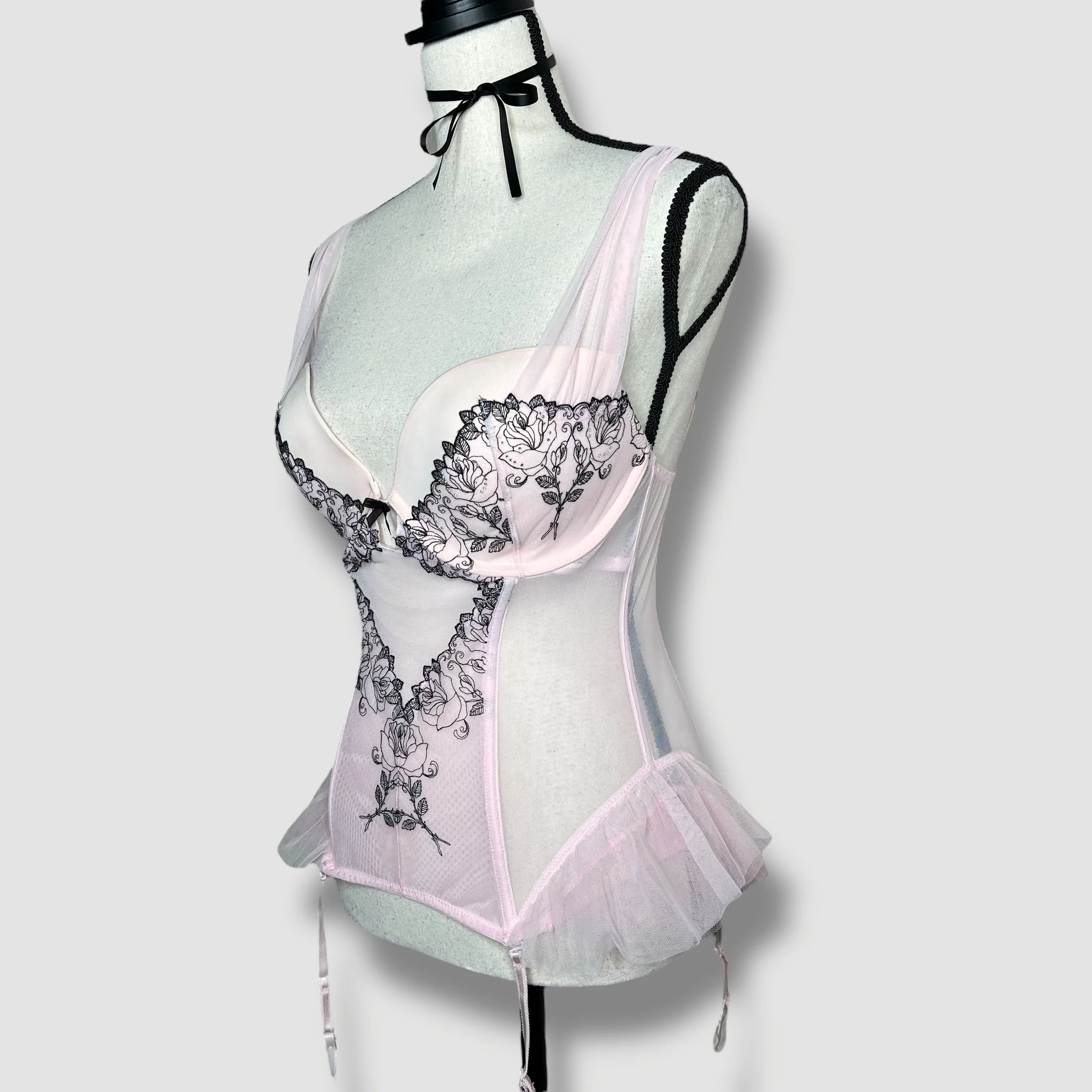 Vintage Black Lace Slip Dress With Baby Pink Bows