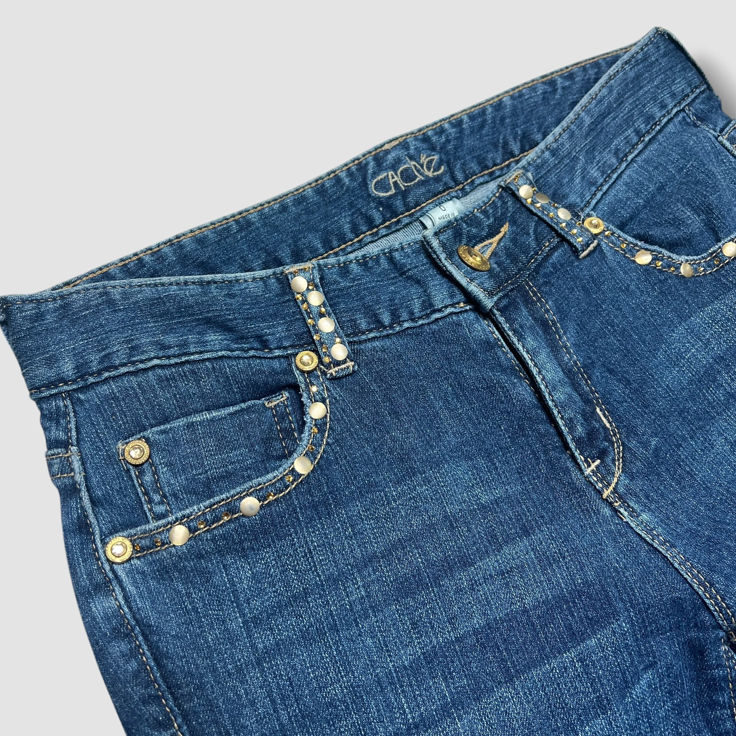 Caché Denim Rhinestone Embellished Flare Jeans