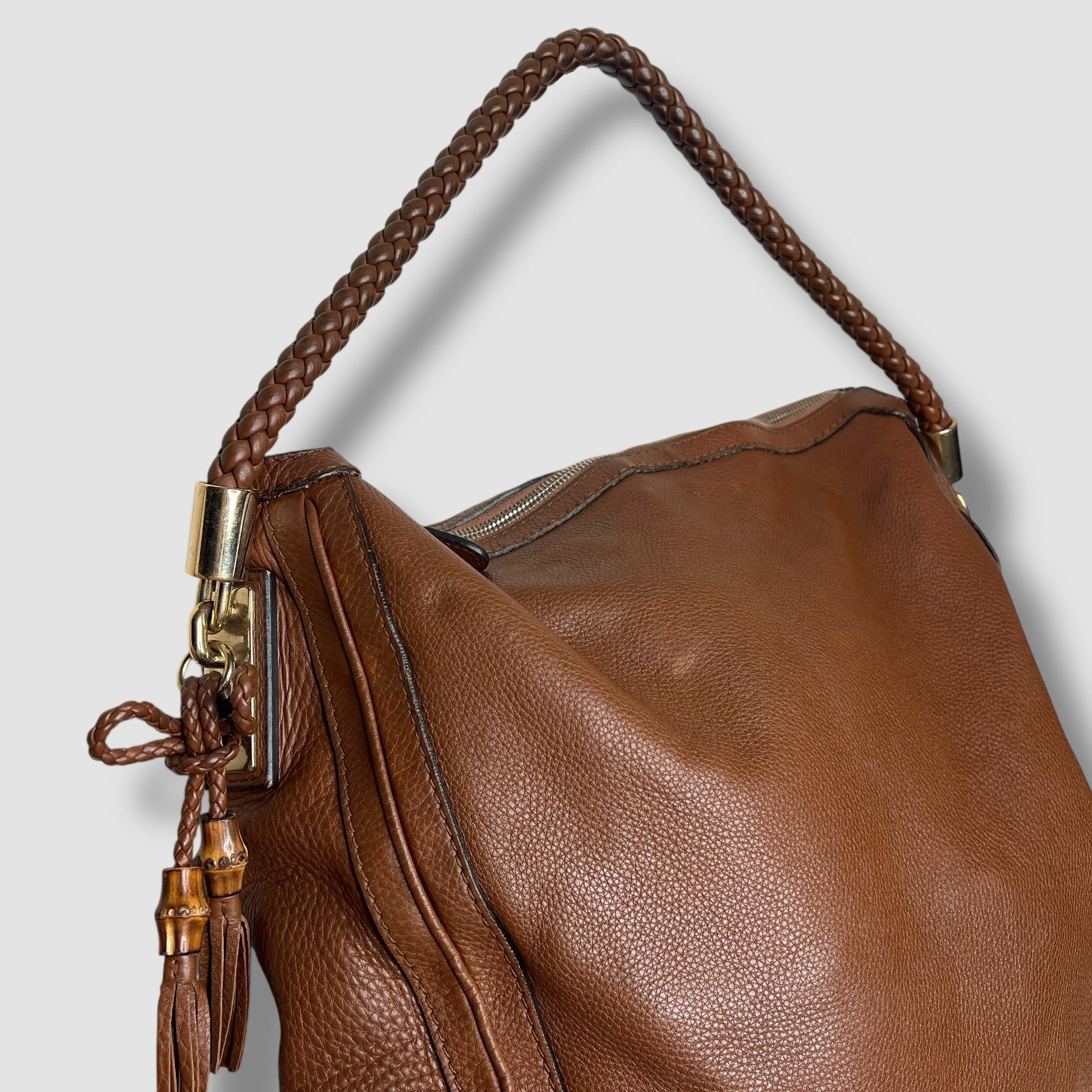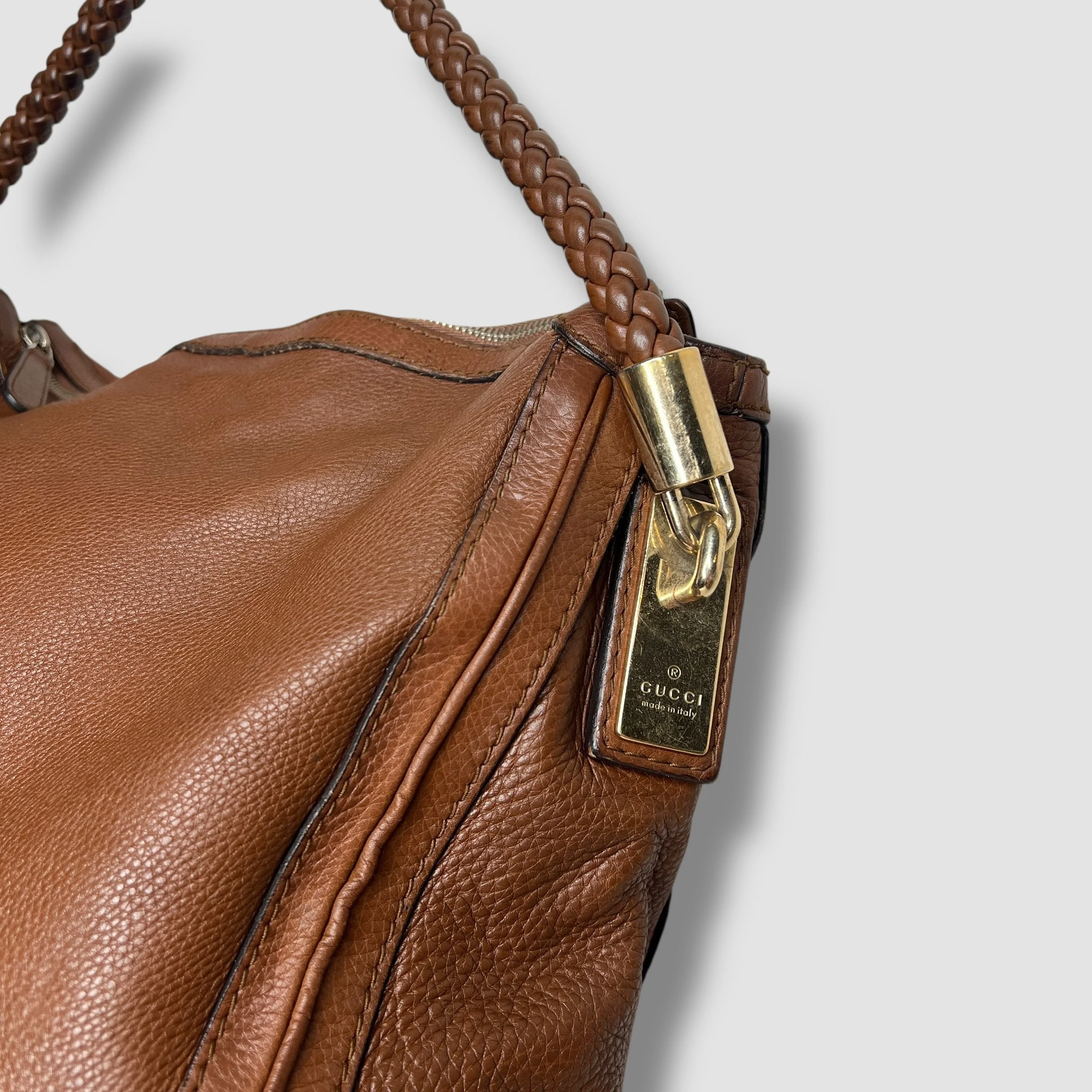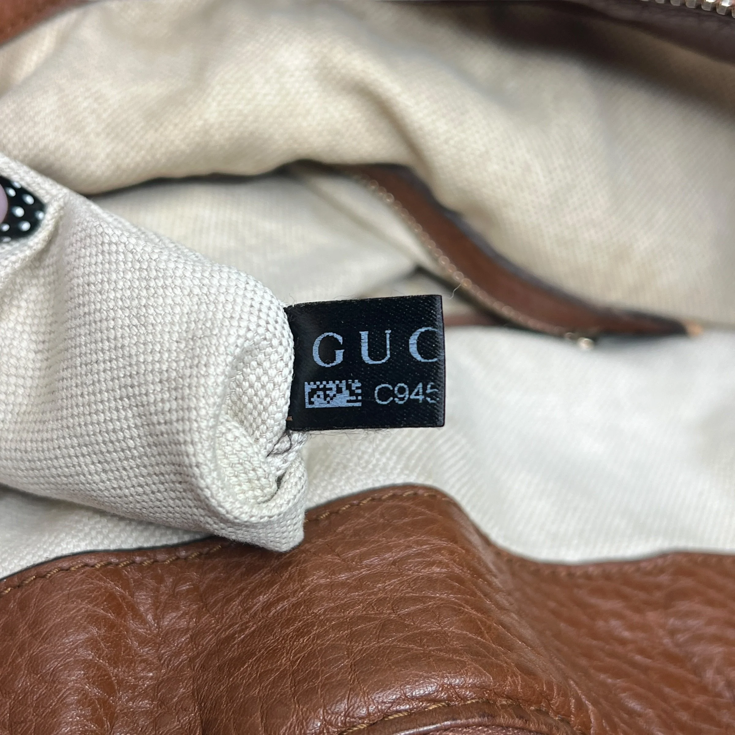 Luxury Gucci Brown Pebbled Calfskin Leather Bella Large Hobo Bag