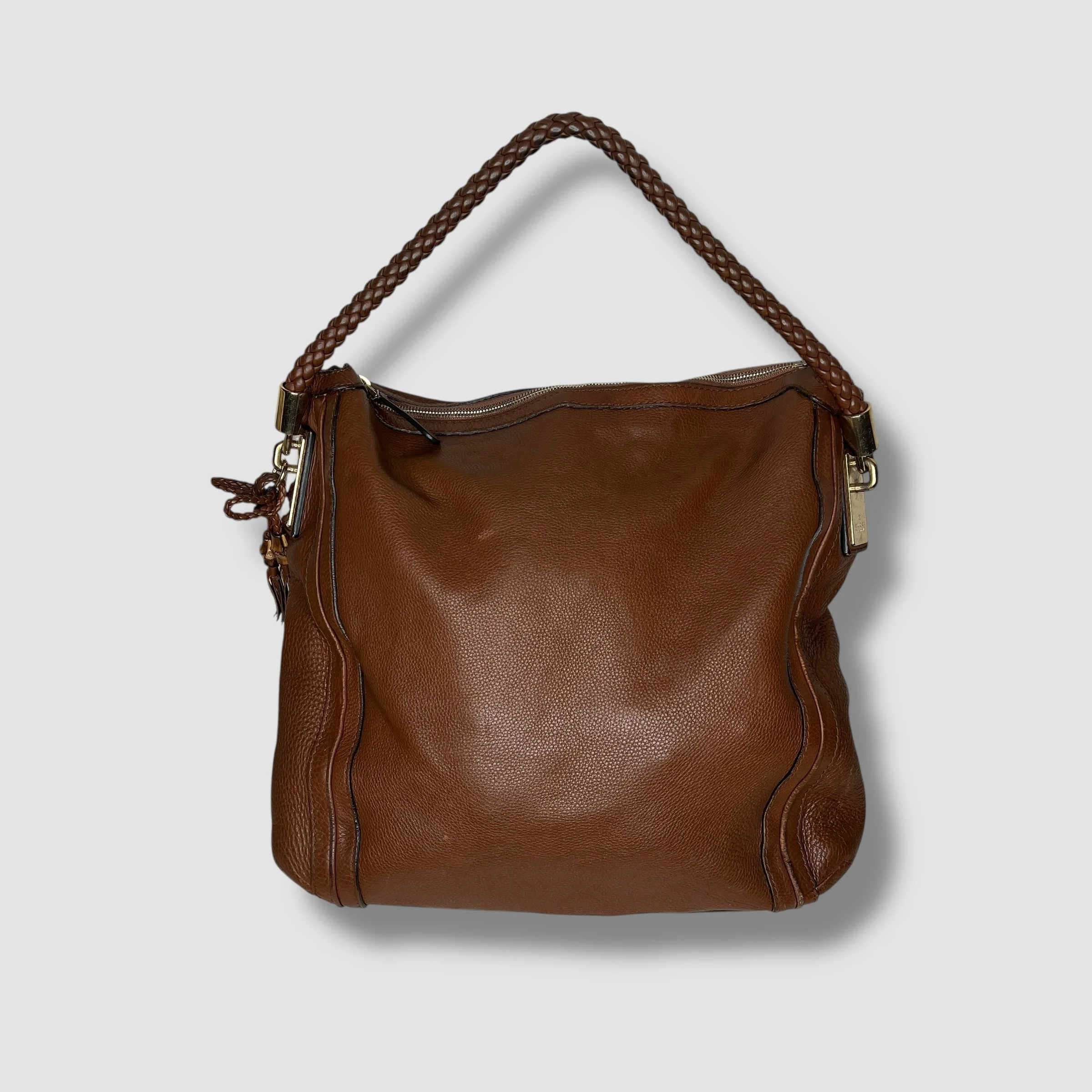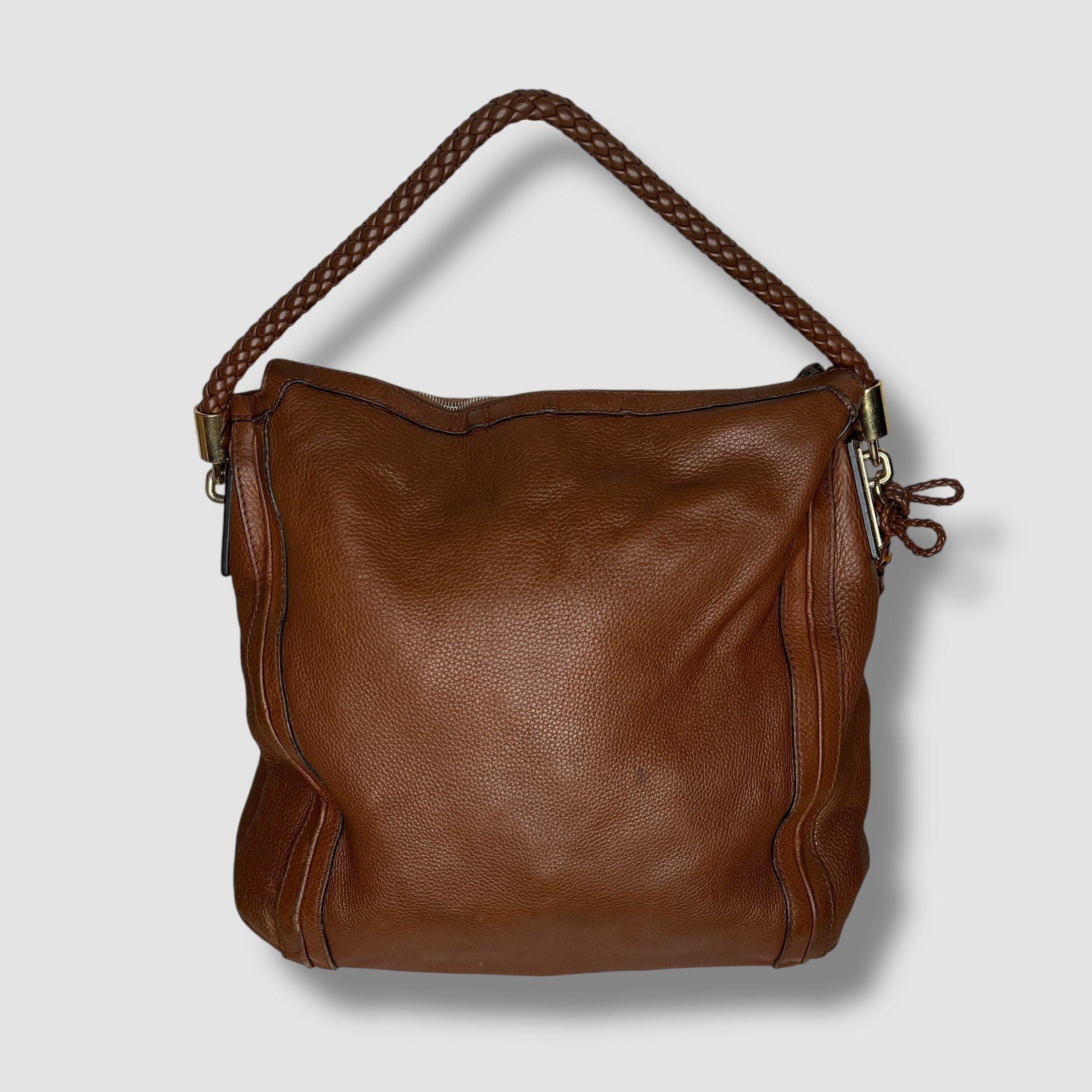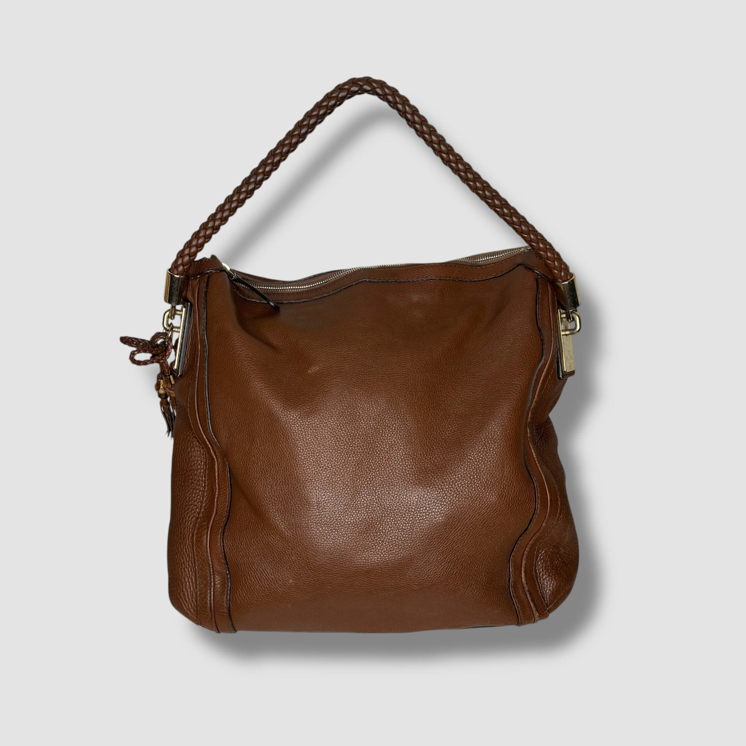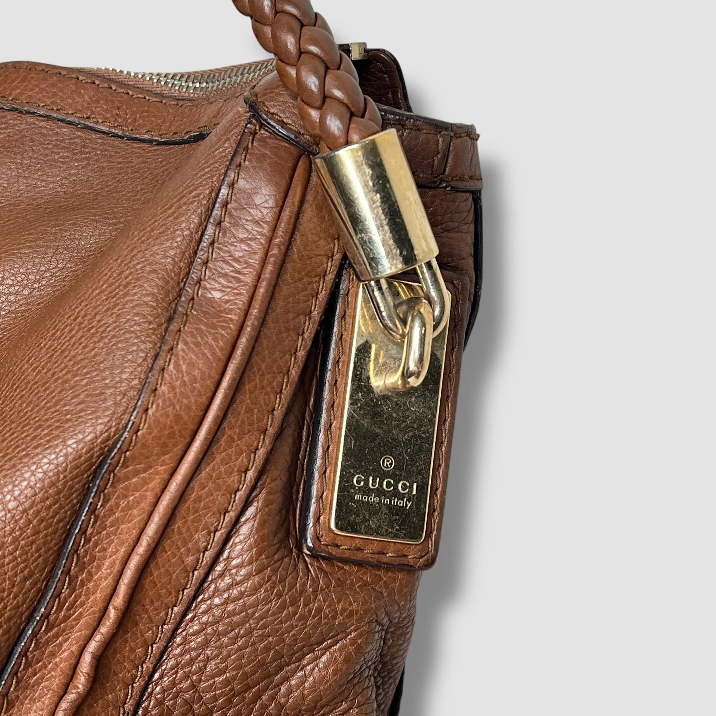 Luxury Gucci Brown Pebbled Calfskin Leather Bella Large Hobo Bag